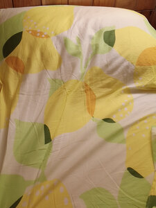 纯棉的,挺大的,标准床用正合适。就是收纳袋太小不好装,需要改进一下