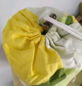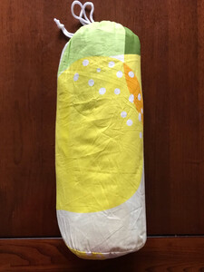 是纯棉的,很柔软,很舒服,居然可以装进这么小一个袋子,携带方便。