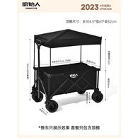 原始人露营推车户外营地拖车超大可折叠手推野餐野营手拉车顶棚 加大黑色顶棚(只含顶棚)