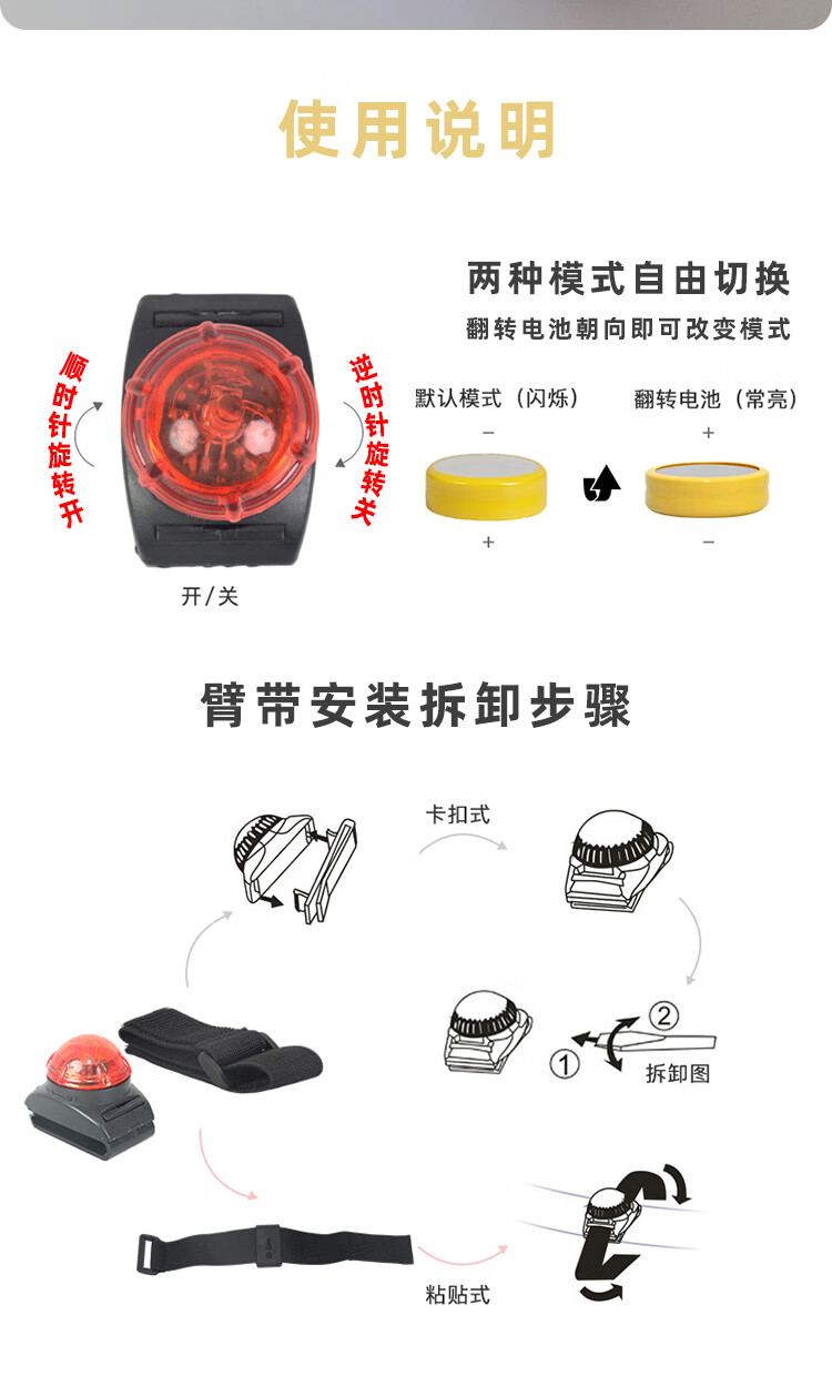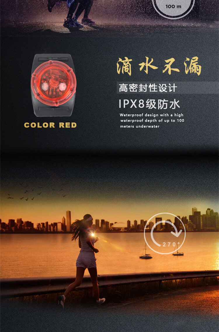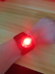 这款防水手腕灯不错的,防水效果不错的,安装也很方便的,灯光也比较炫酷的超赞。户外游泳跑步骑行都可以用的,卖家还赠送了两枚备用电池,超赞!