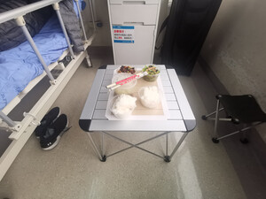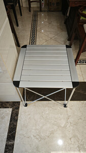 桌子很轻便,收纳尺寸也不大,跟原始人月亮椅差不多尺寸吧,总体还是不错的,由于这个是铝合金原色工艺,可能容易产生划痕,客服态度不度不错有问题也会主动解决。