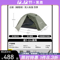 黑鹿(BLACKDEER)丘陵双人/三人帐篷 户外露营双层防雨防晒超轻徒步登山专业帐篷 丘陵(橄榄绿)双人帐篷 四季