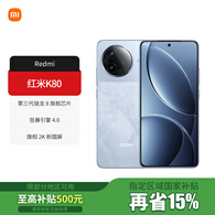 小米(MI)【国家补贴】REDMI 红米K80 新品5G手机 第三代骁龙8 6550mAh大电池长续航 2K屏 汐月蓝 16GB+256GB