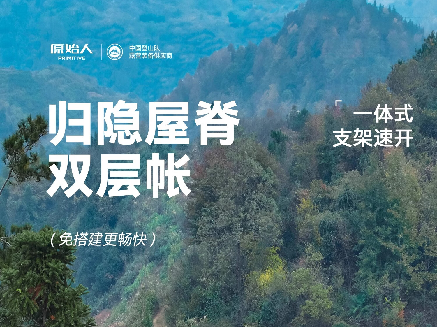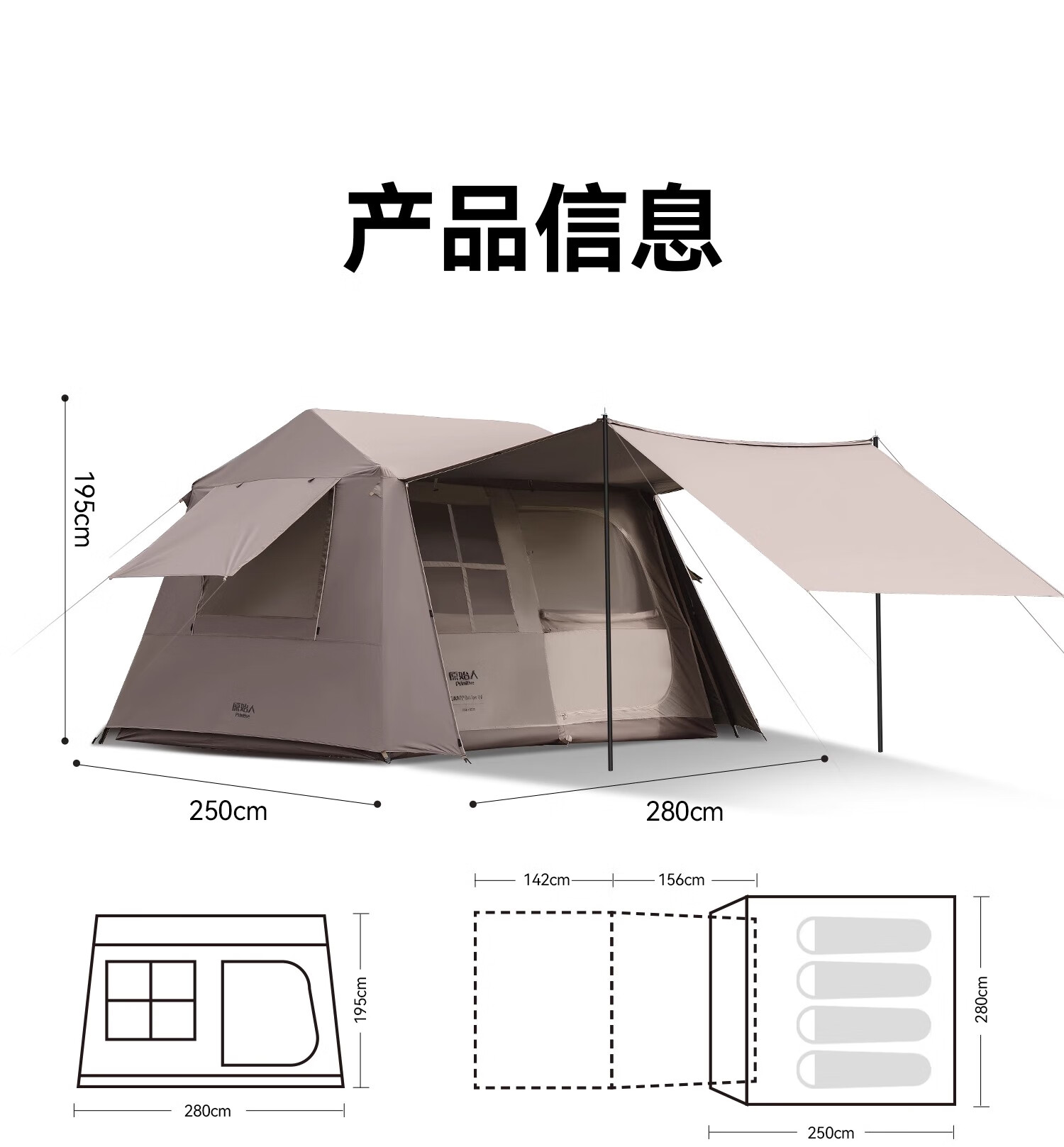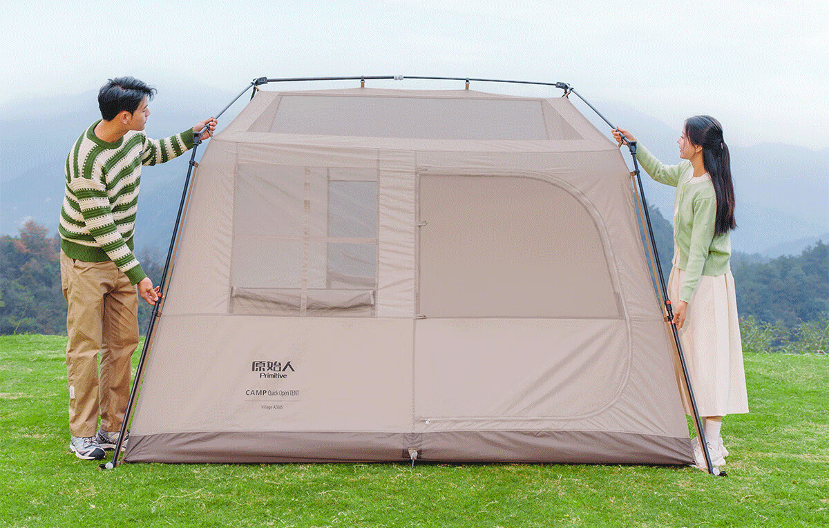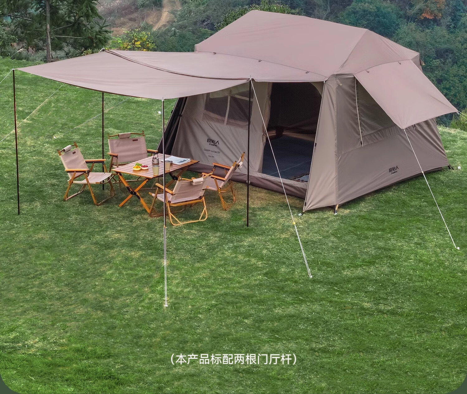 原始人户外露营帐篷天幕二合一速开便携式折叠屋脊野营过夜冬季保暖装备 屋脊7㎡舒适露营套餐