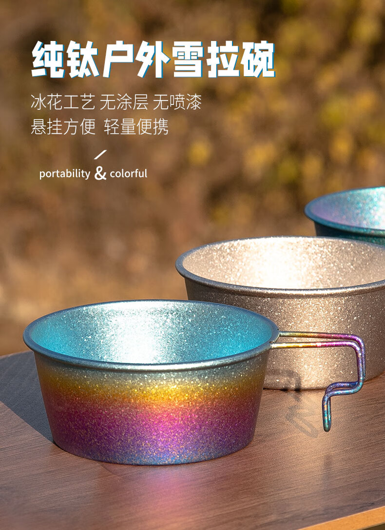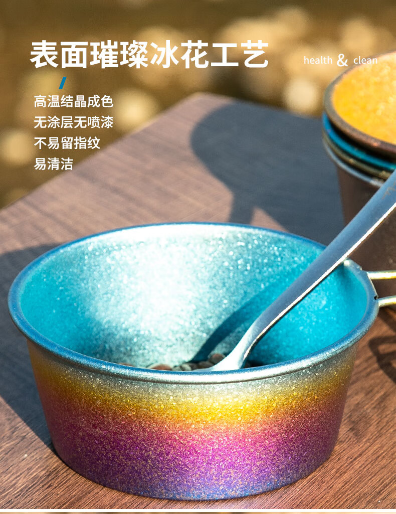 纯钛雪拉碗大号-冰花蓝边炫彩 户外的装备,入口的全换了钛的,携带轻便,款式也行,主要是使用安全还可以上火烤 非常好,非常喜欢,十分完美,一级棒👍🏻无限回购~