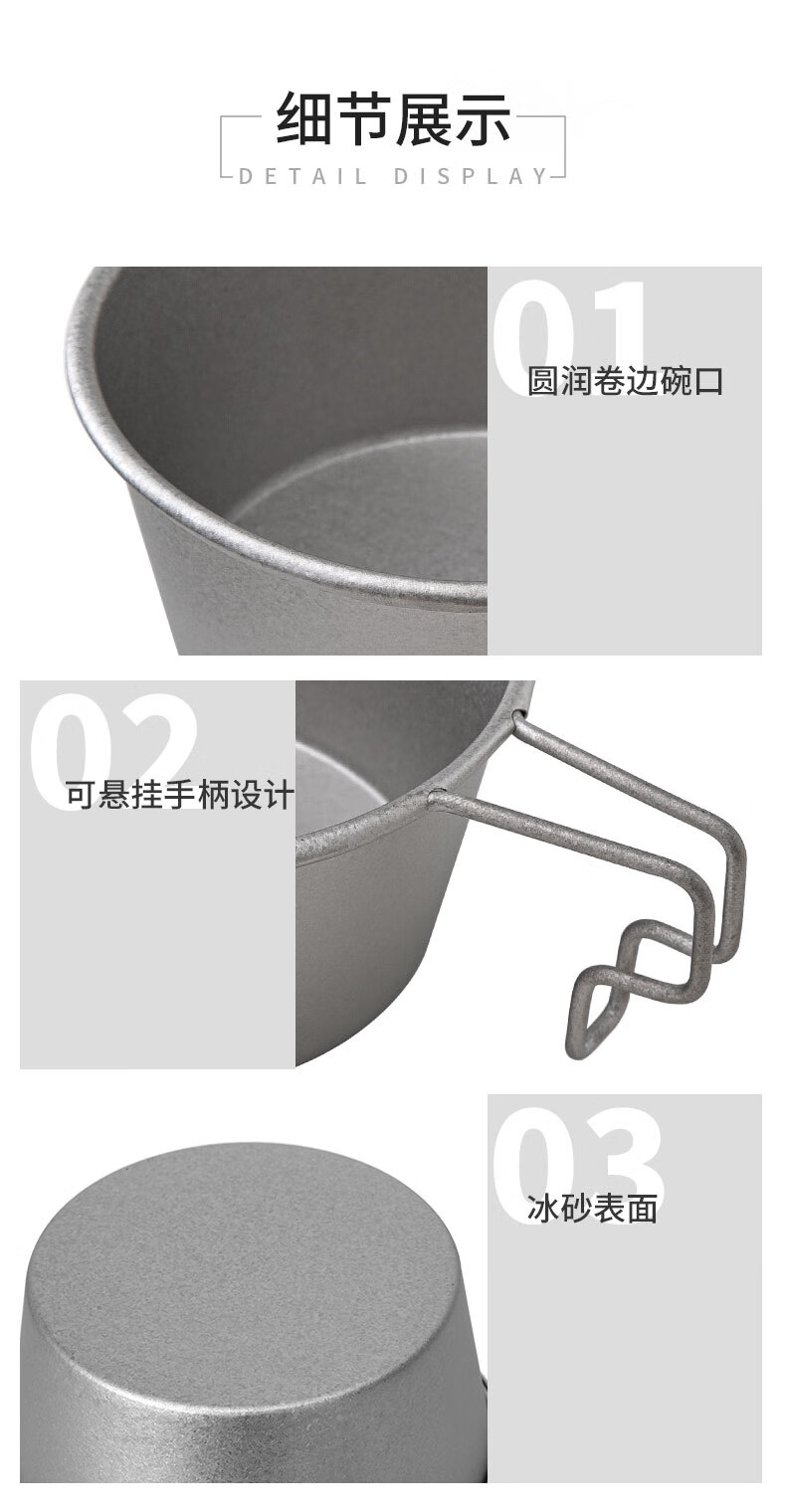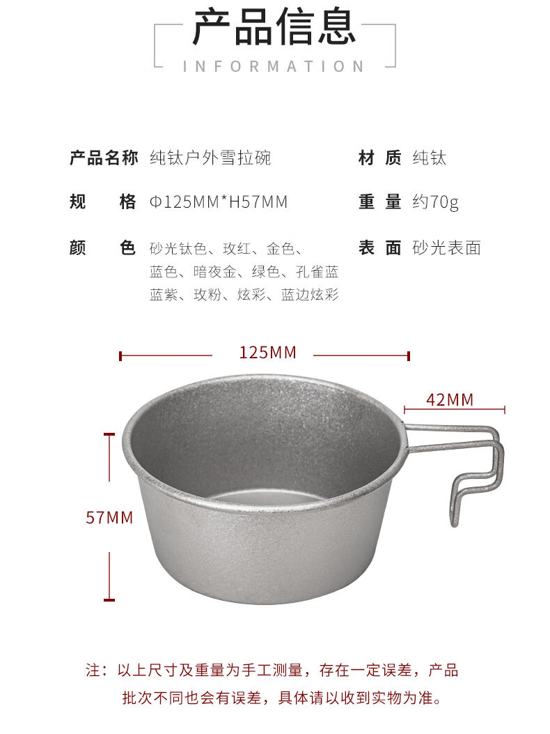 钛途(TITO TITANIUM)纯钛雪拉碗大号户外露营野餐餐具便携带把手旅行健康饭碗饭盒碗 纯钛雪拉碗-大号-冰砂钛色
