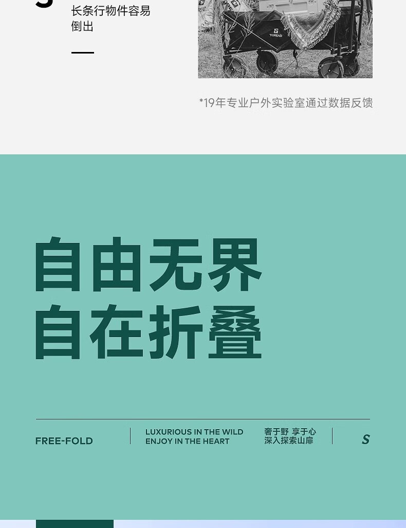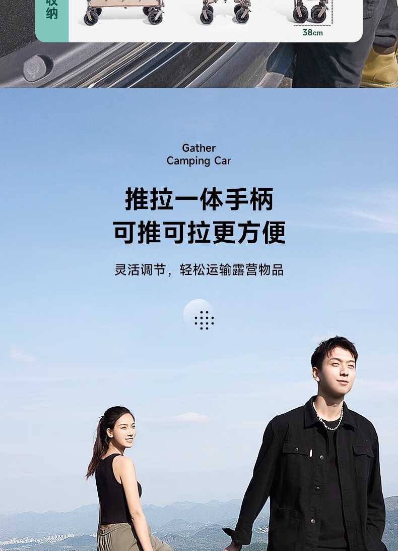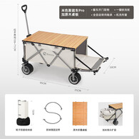 北欢露营车户外营地车可折叠露营推车野餐手推车便携钓鱼拉杆车可拓展 210L 有刹车 米色PRO单车+原木桌板
