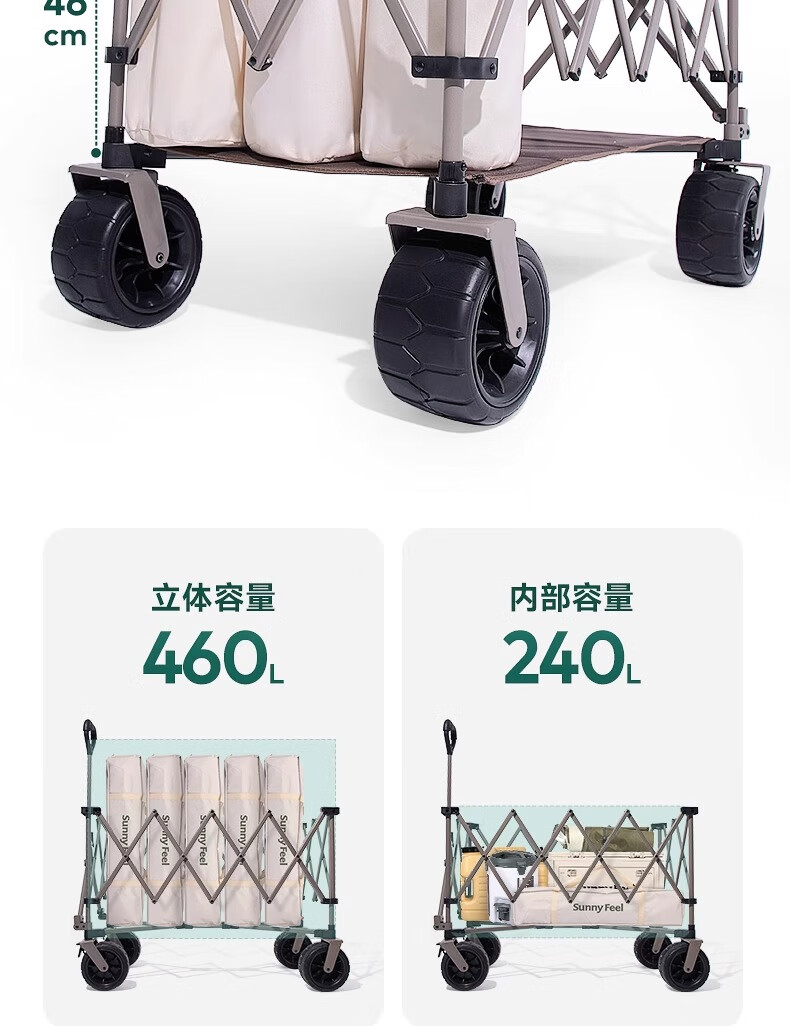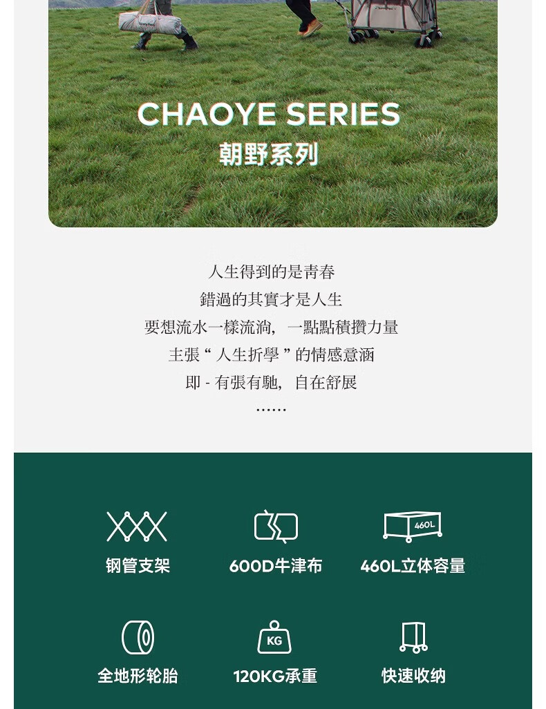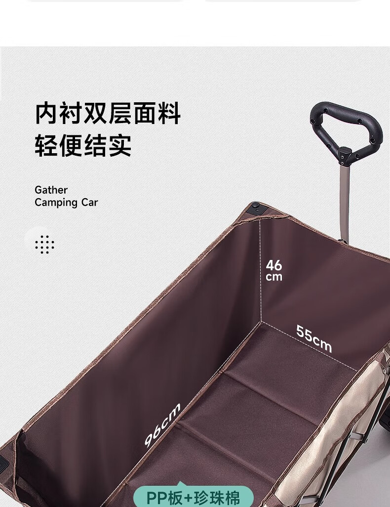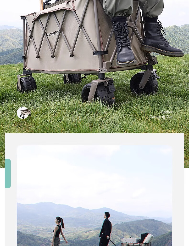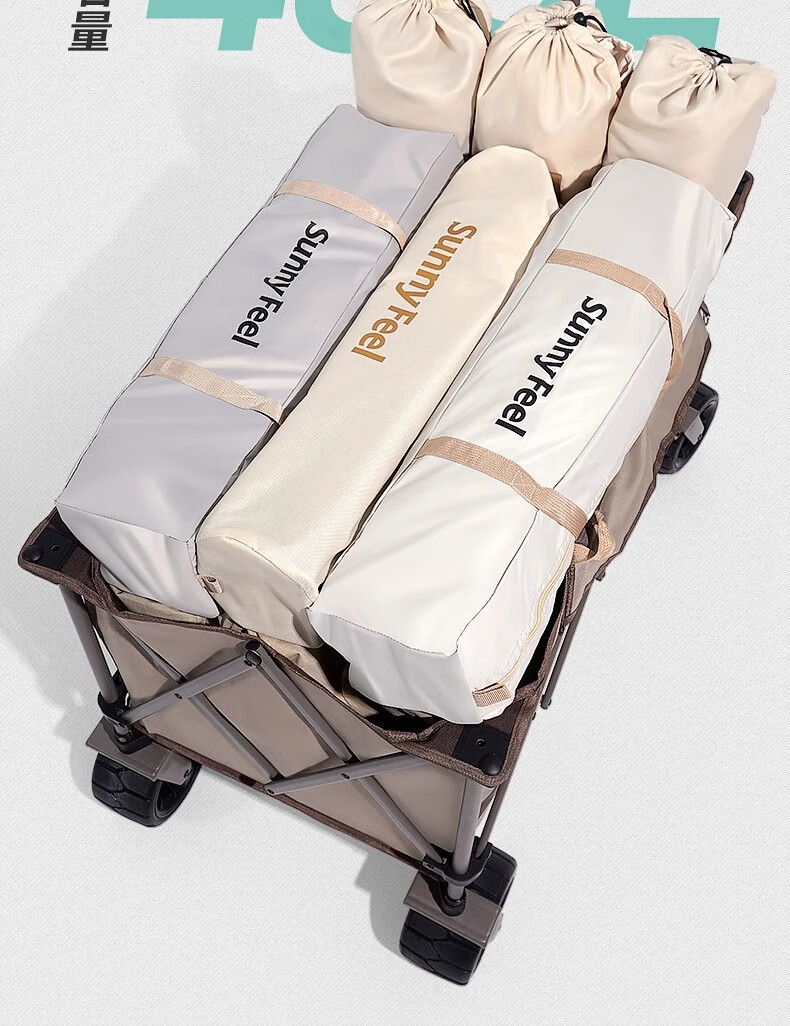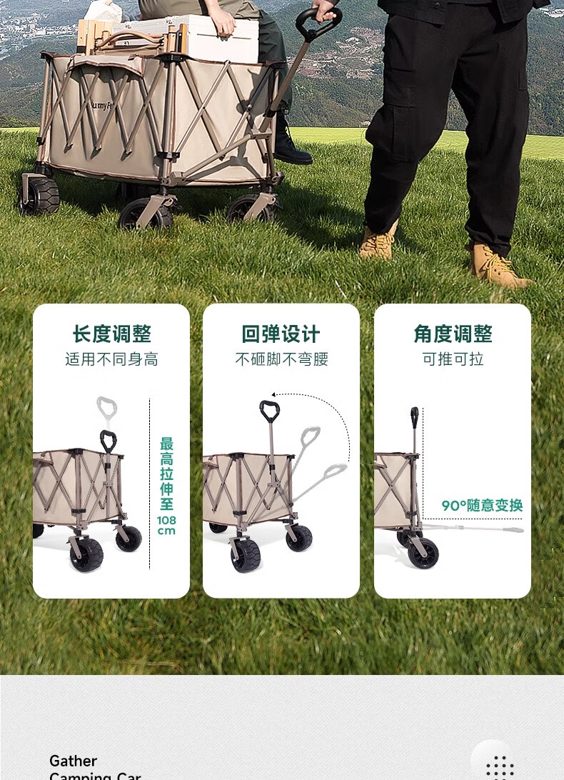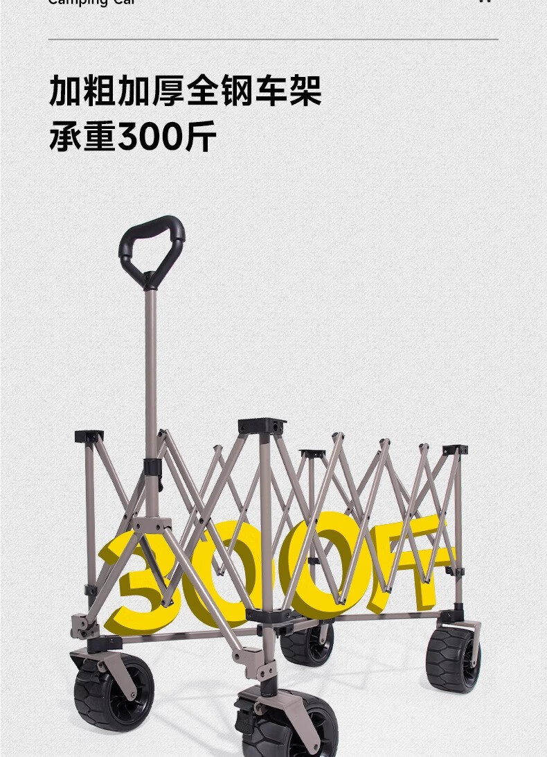 山扉户外露营车超大MAX营地车推车聚拢款野餐拖车大容量Plus山姆同款 卡其色 150L 有刹车 聚拢10cm越野轮