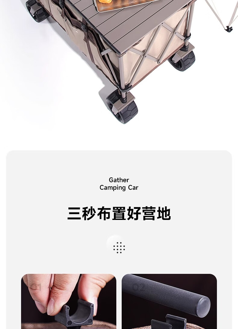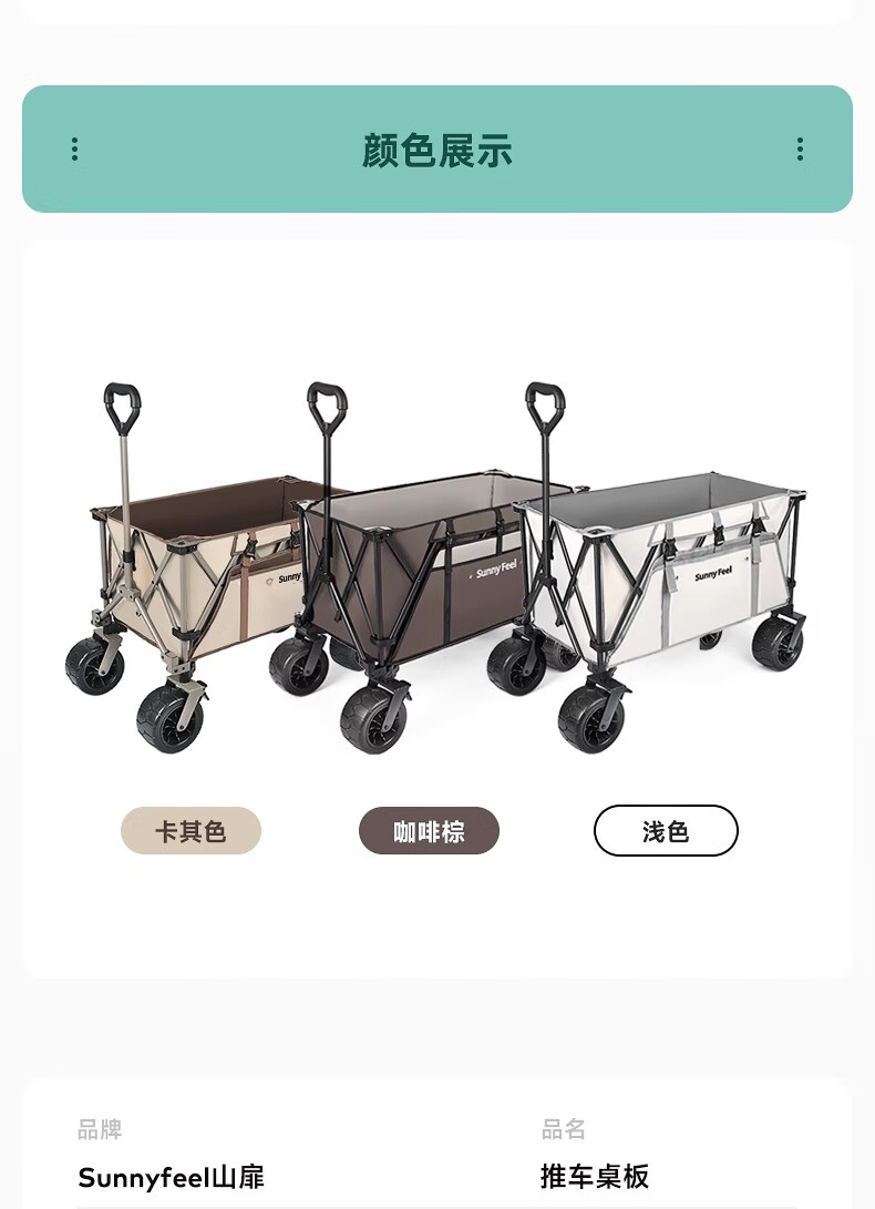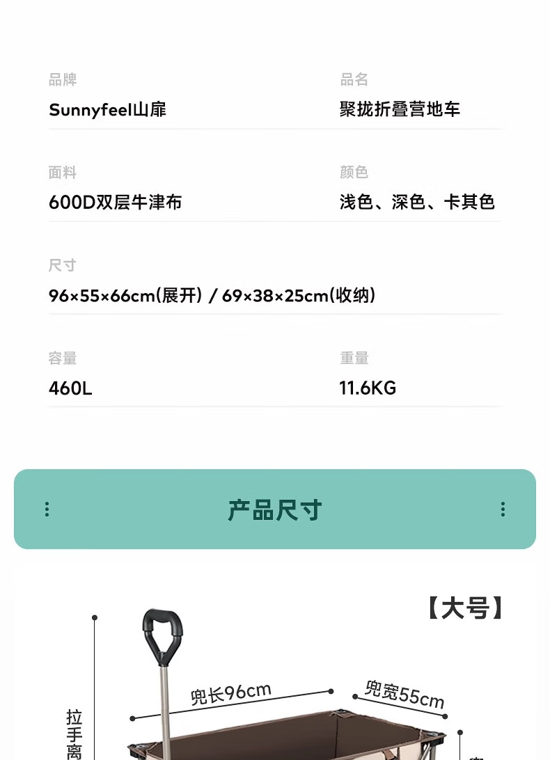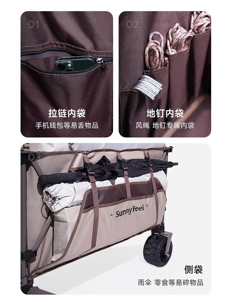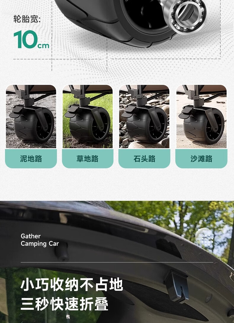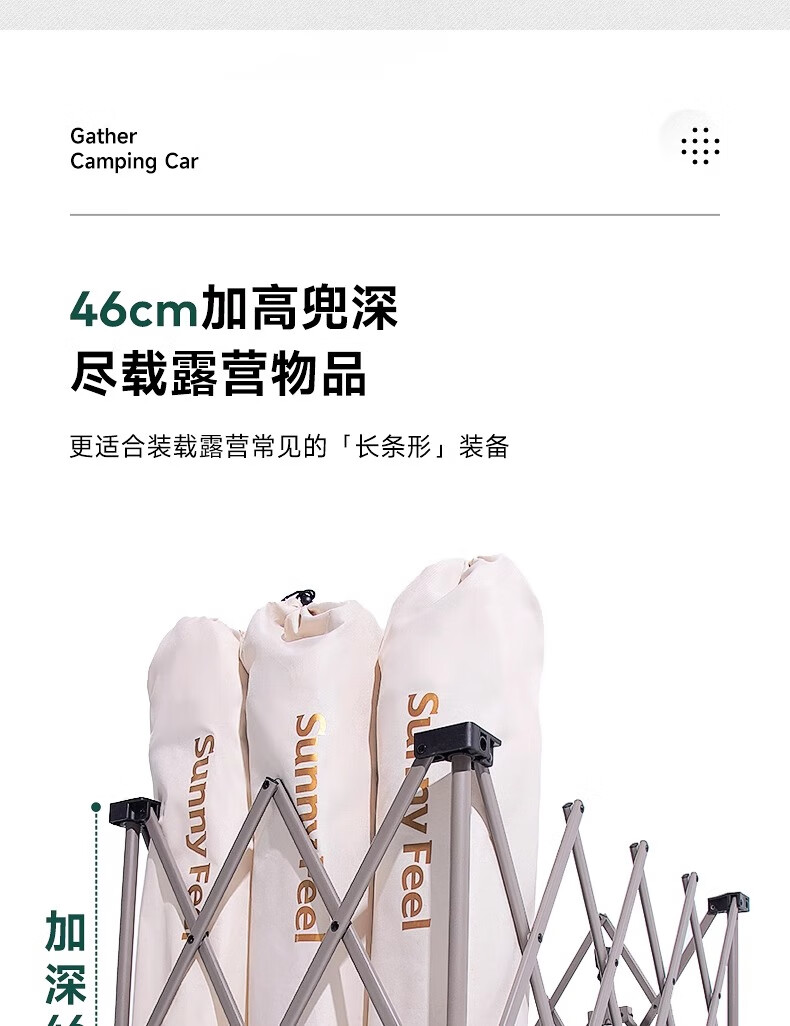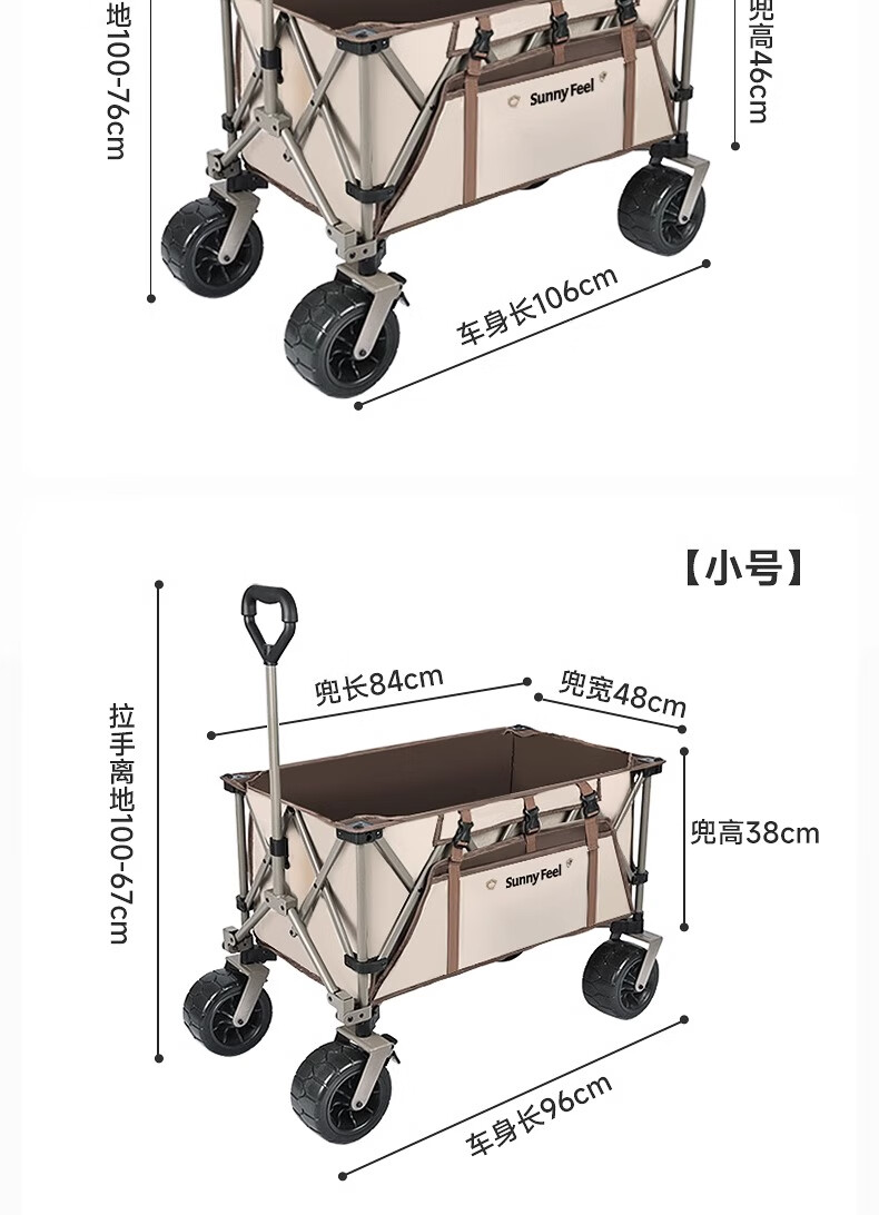 山扉户外露营车超大MAX营地车推车聚拢款野餐拖车大容量Plus山姆同款 卡其色 150L 有刹车 聚拢10cm越野轮