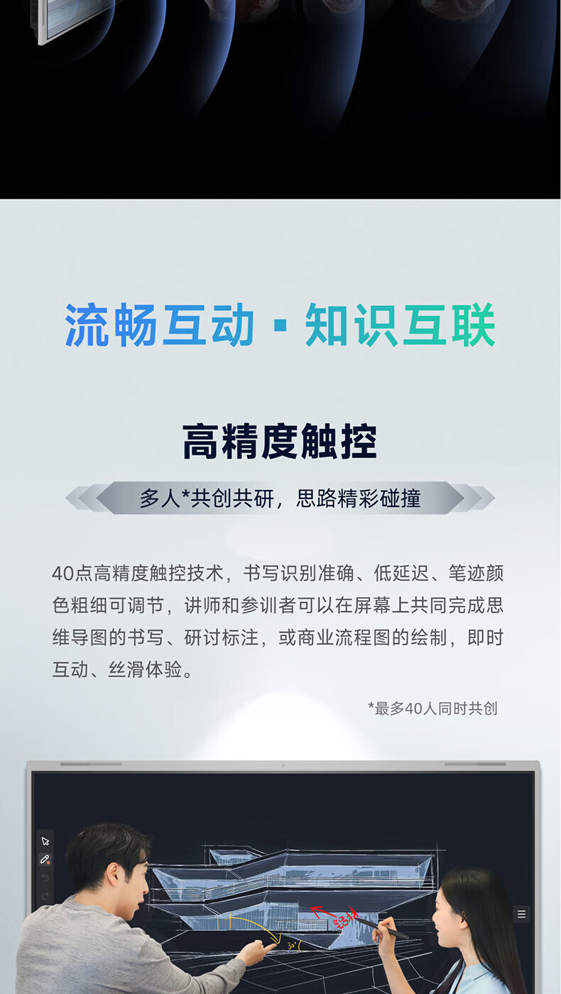 整体很沉稳大气,windows的系统用着很习惯,公司开会使用触控笔使用也很流畅,机身采用金属材质很有质感很好,也很耐用。画面清晰,下次还得买希沃,信得过,服务还好
