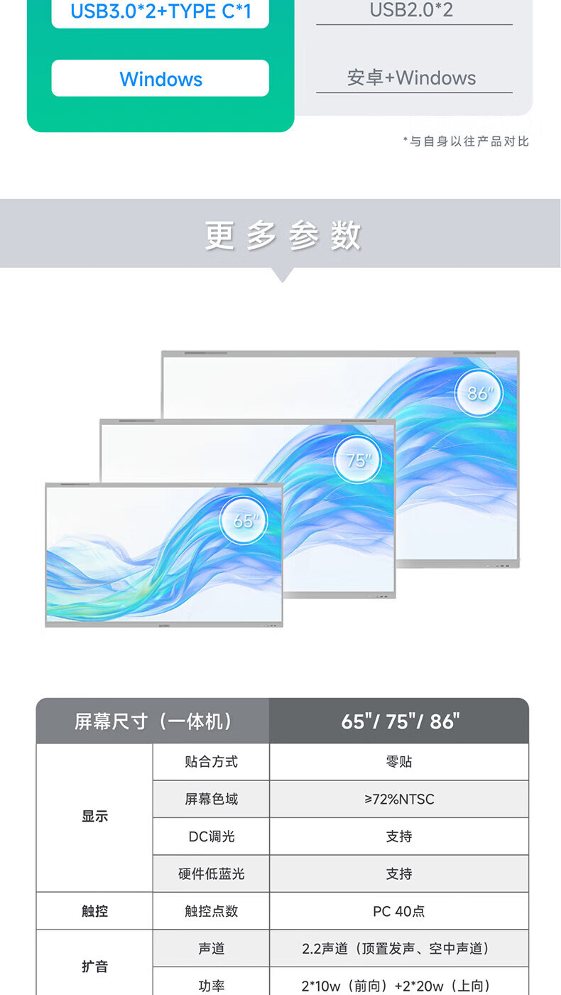 智能会议平板一体机多媒体教学电子白板多功能电视触摸屏显示器 WIN10系统I7/8+256 定制配置预付