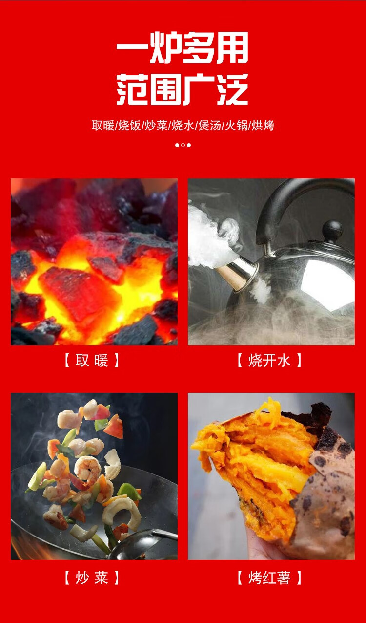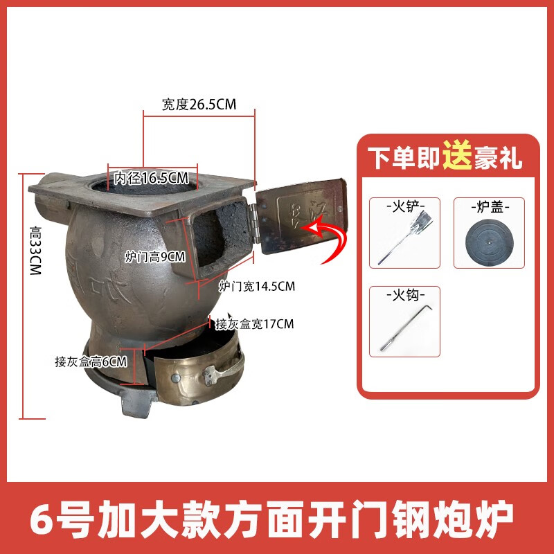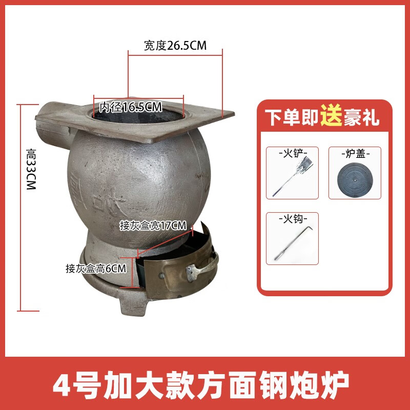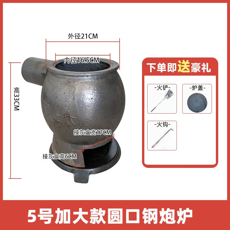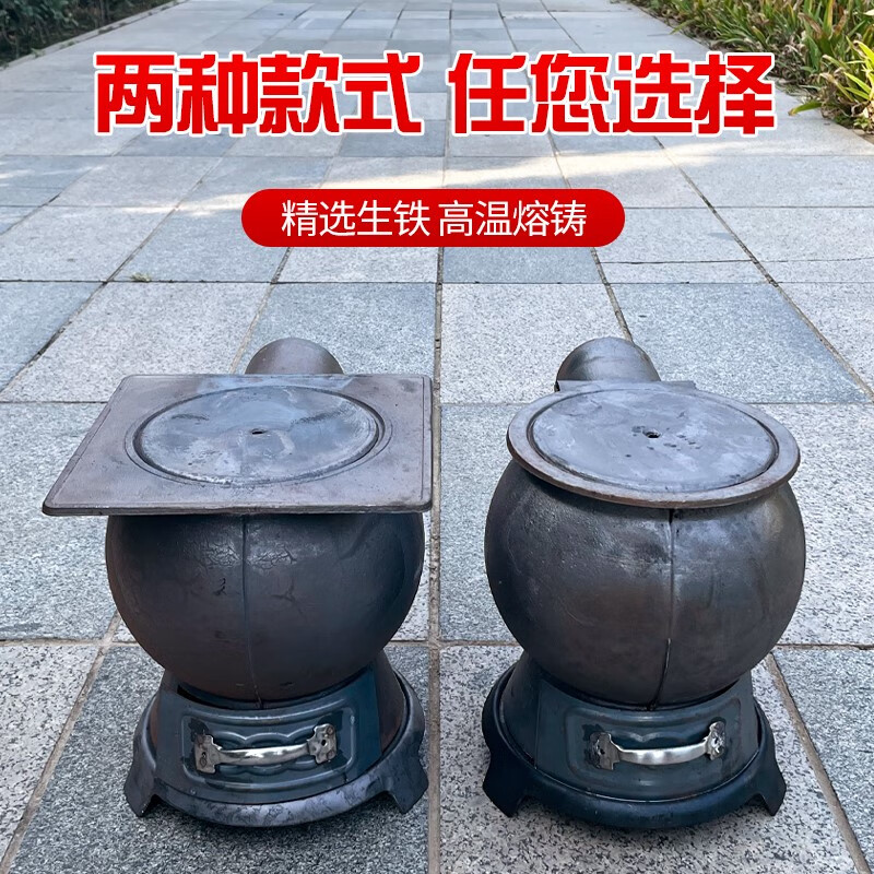 妃图铸铁取暖炉室内柴煤两用大肚炉老式煤炉养殖升温炉炮弹炉憋气炉厚 铸铁柴煤2用小号