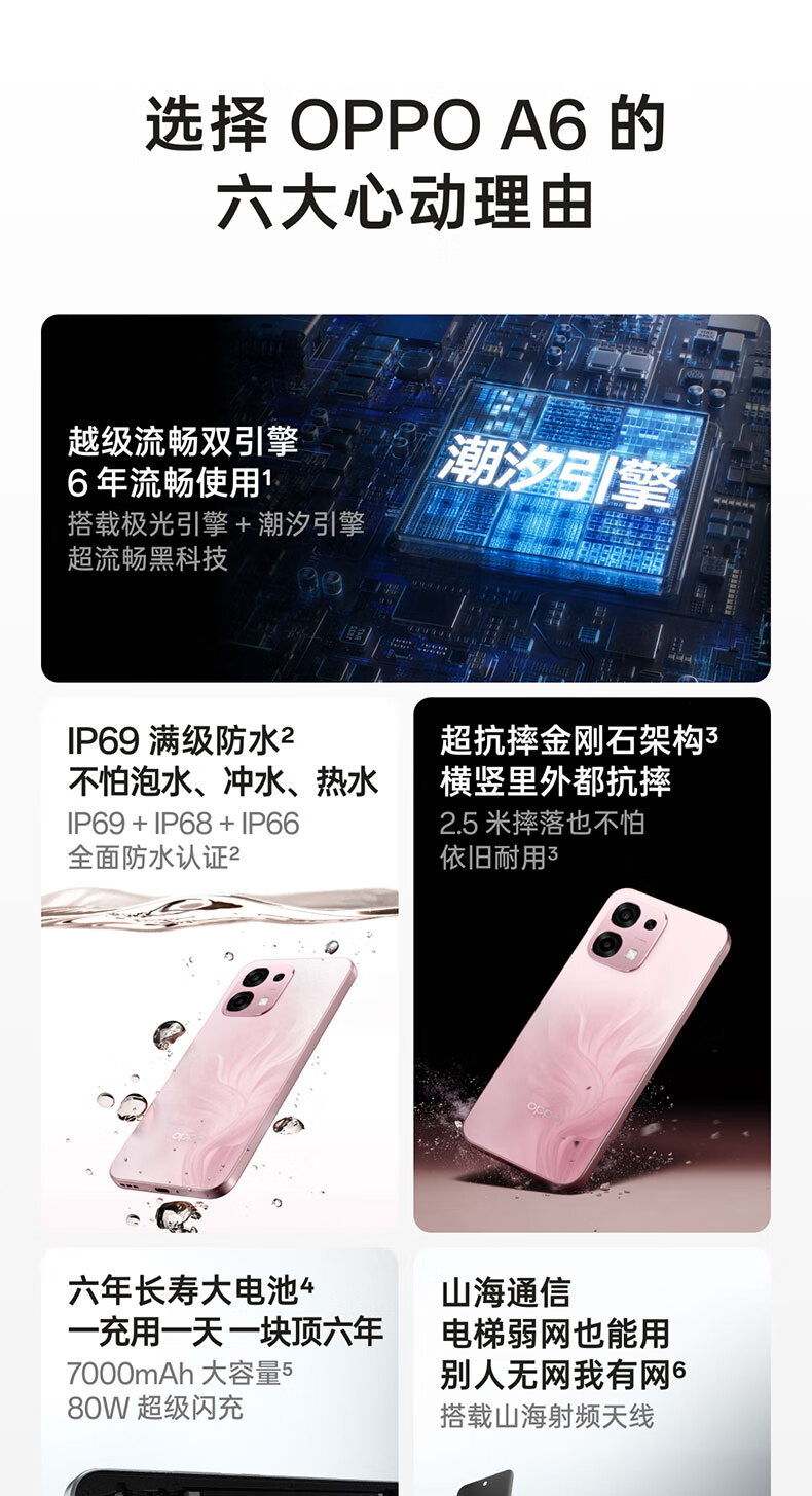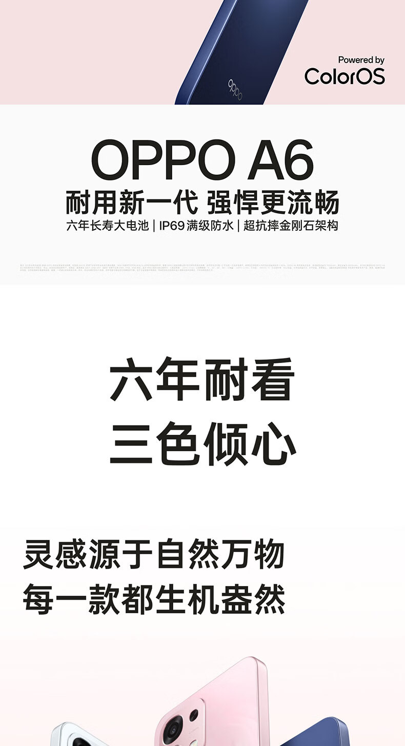 OPPO A6新品5G手机 IP69防水 耐用抗摔新款智能 越级流畅双引擎 6年耐用大电池大内存 粉梦生花 8GB+256GB 官方标配【全国联保】