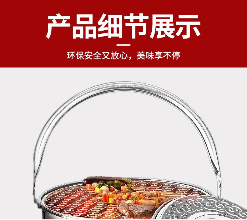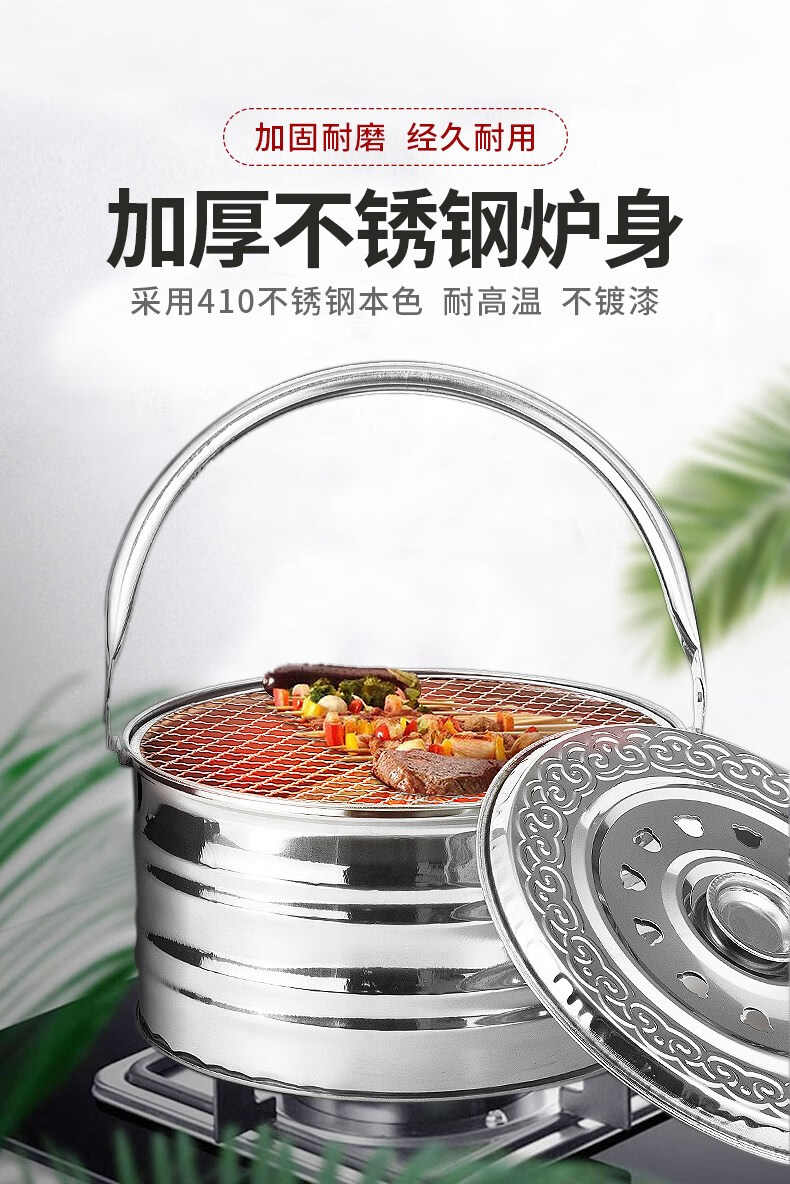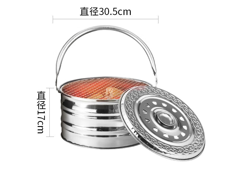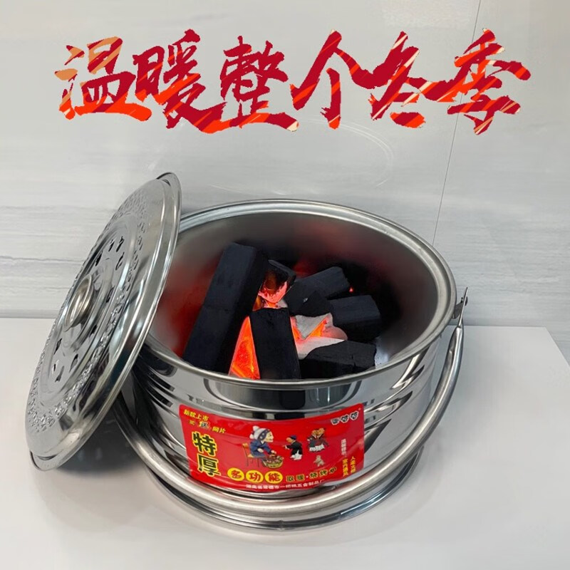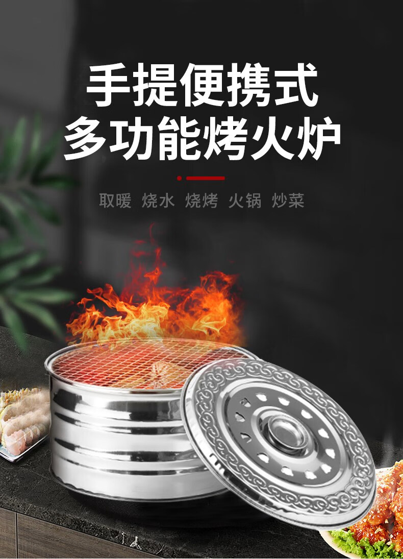 仰朋木炭炉取暖炉烧烤炉架烤火盆不锈钢烤火架碳火盆农村老式手提火盆 升级木炭炉【带烤网】