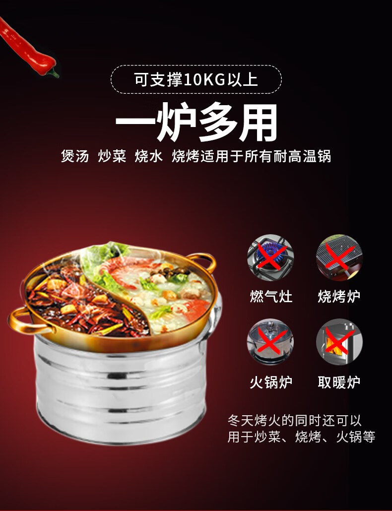 山头林村铸铁炭炉室内取暖老式炉子火炉生铁户外木炭柴火灶围炉煮茶烧碳 20CM炭炉[带提手+炉栅]+不锈钢