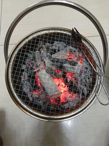 糜岚木炭烤火盆取暖炉碳烤火炉烧烤炉架搬家进火农村老式竹炭火盆手 炭炉+碳夹+漏板+烧烤网