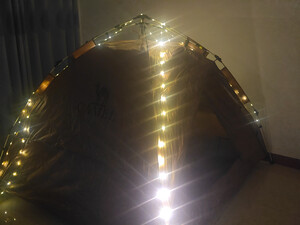 户外露营扎帐篷,晚上露营用的氛围灯,选了很多,购买“探险者”。买了探险者很多户外露营装备,都挺好!这个灯也超级赞👍! 到货包装完好,灯的材质好、亮、续航时间长、收纳也方便、像卷尺收、放,拉出灯带当氛围灯带也很漂亮、美!卷起来可以照明,亮不刺眼!很满意! 物流非常好!赞!