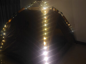 这款户外露营氛围灯是我在京东自营品牌对比买的,有几种工作模式,还能当帐篷灯用,省电,收纳方便,10米的氛围灯,出去露营时用省心
