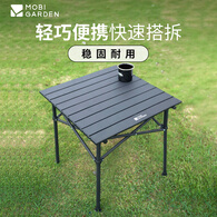 牧高笛户外露营野餐便携碳钢折叠蛋卷桌野餐野营装备山享方形蛋卷桌 曜石黑S 适用1-2人