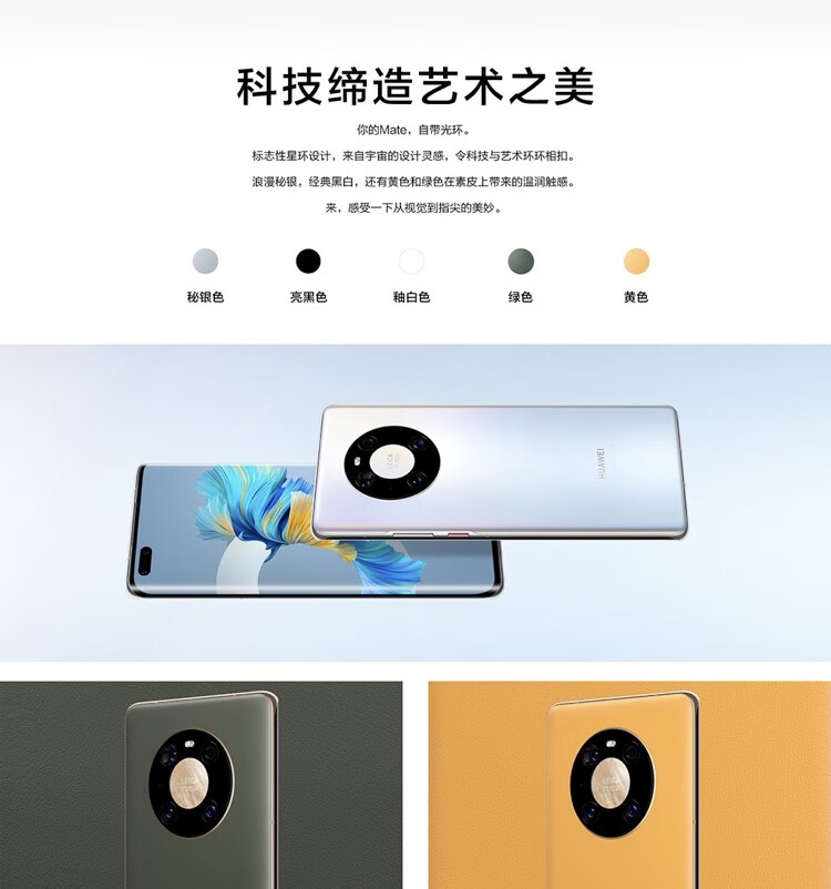 华为Mate 40 pro 5G全网通麒麟9000芯片鸿蒙国货NFC双卡游戏学生 白色 8+128 送超级快充充电器