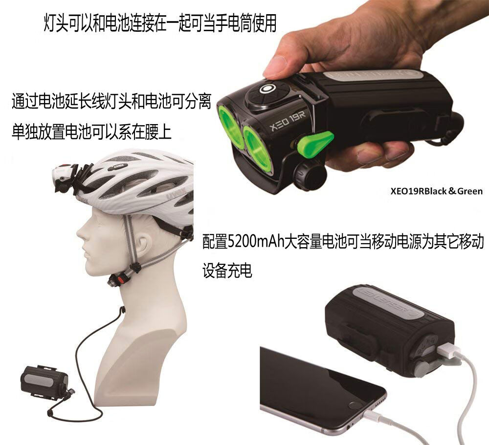 三栖虎XEO19R户外滑雪攀岩极限骑行可充电双头灯防水 XEO19R黑色