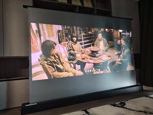 收到心心念念的幕布了,满满的科技感,升降很丝滑,我用的是坚果的J10s 国产机器亮度还是不太足,但是投影整体效果还可以,我家小孩儿可喜欢了。也不担心伤眼睛了!鲸米大品牌还是值得信奈的!