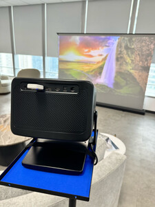 1.包装和物流都是扛扛的的,包装的非常专业、保护的非常好;2.很有质量感,放地面稳稳的;3.自动升降非常方便;4.打开效果,画面平整、清晰,视觉效果非常清晰,看电影的效果即现。