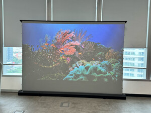 地升幕布收到了,试用了几天效果不错,开机生屏速度还可以,声音也不大,而且移动方便。
