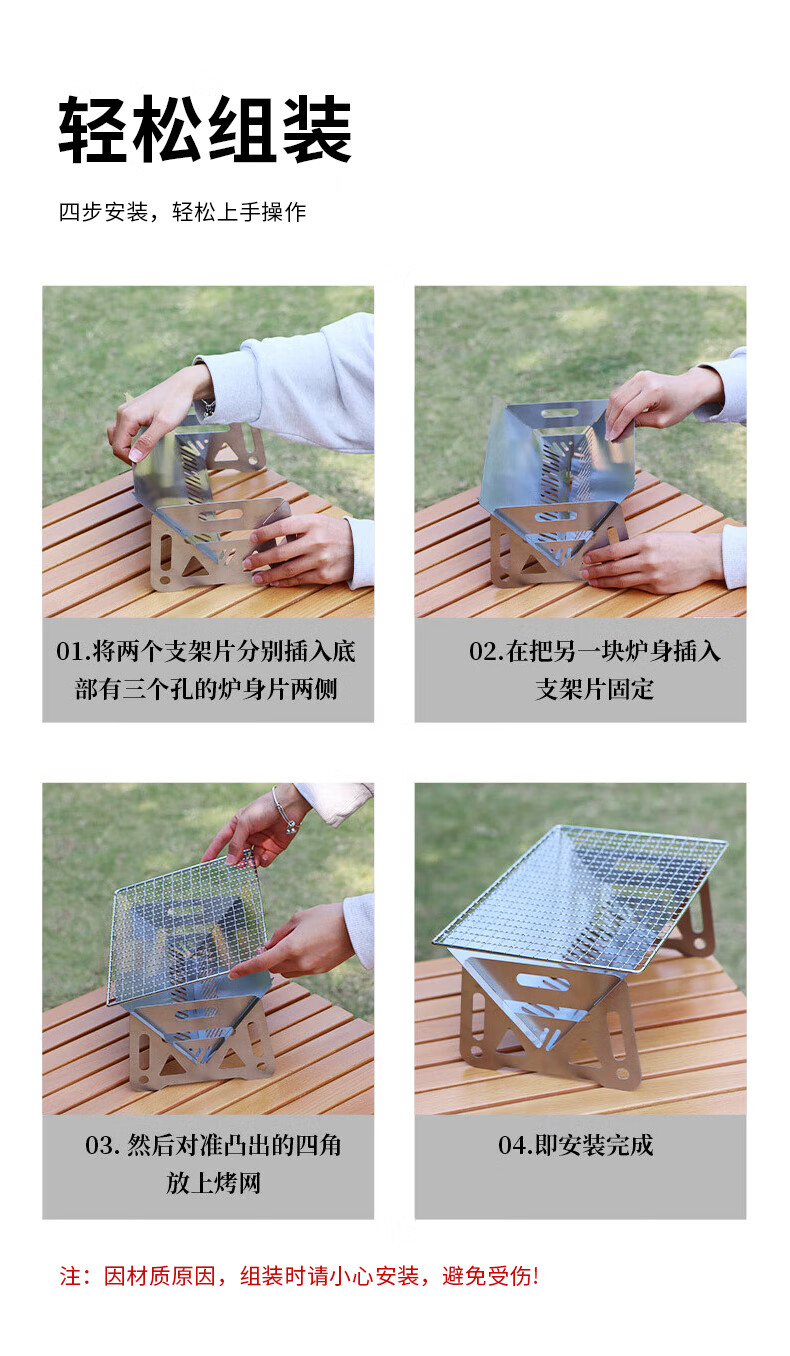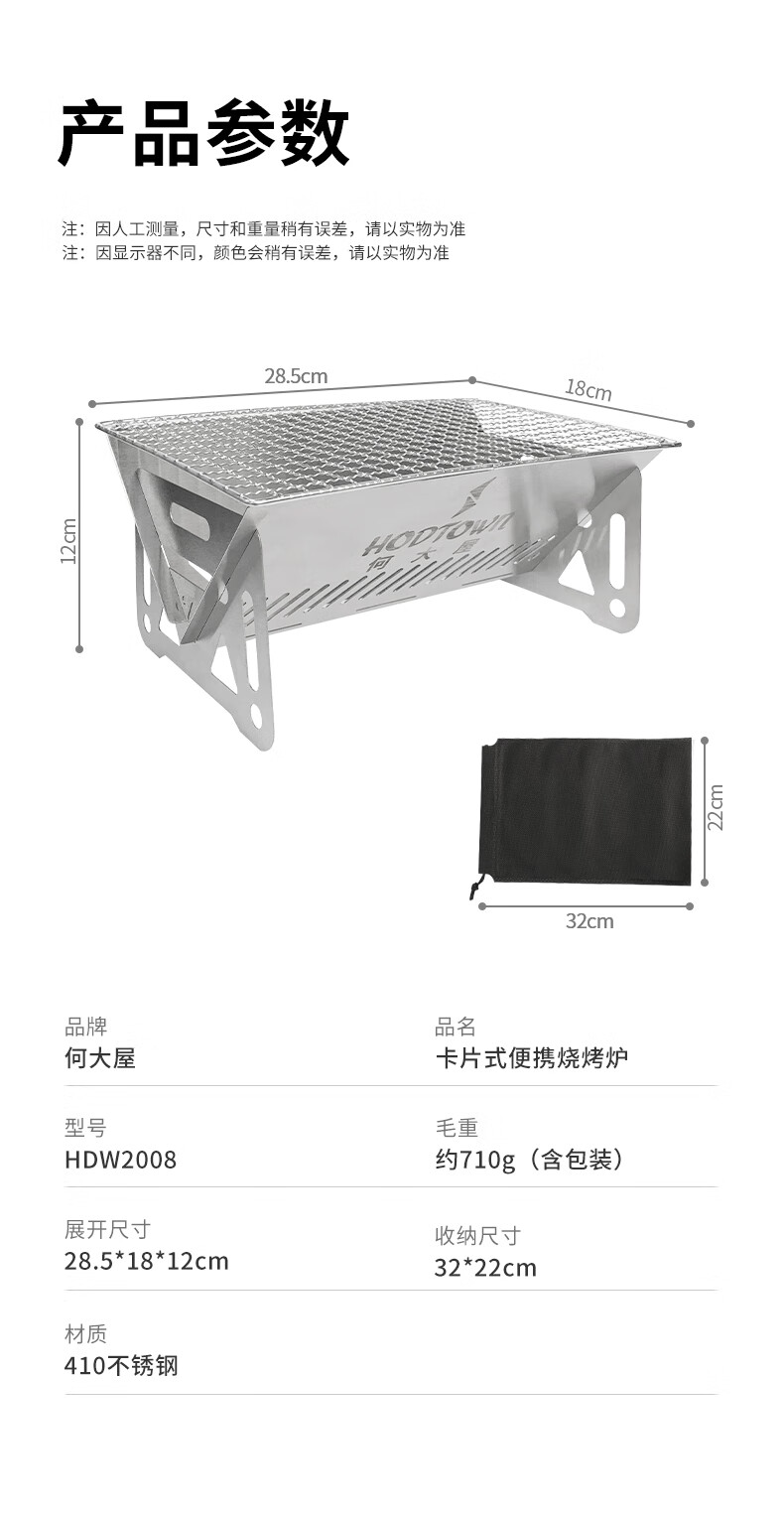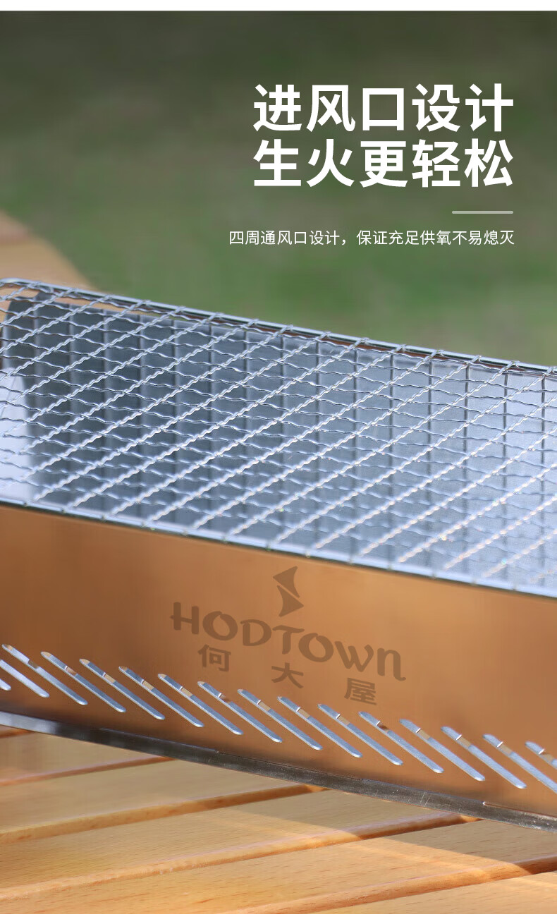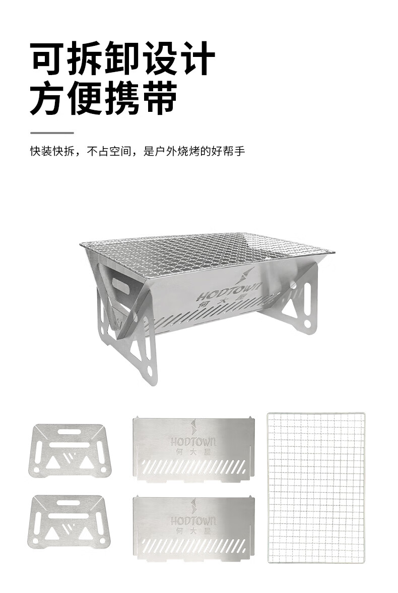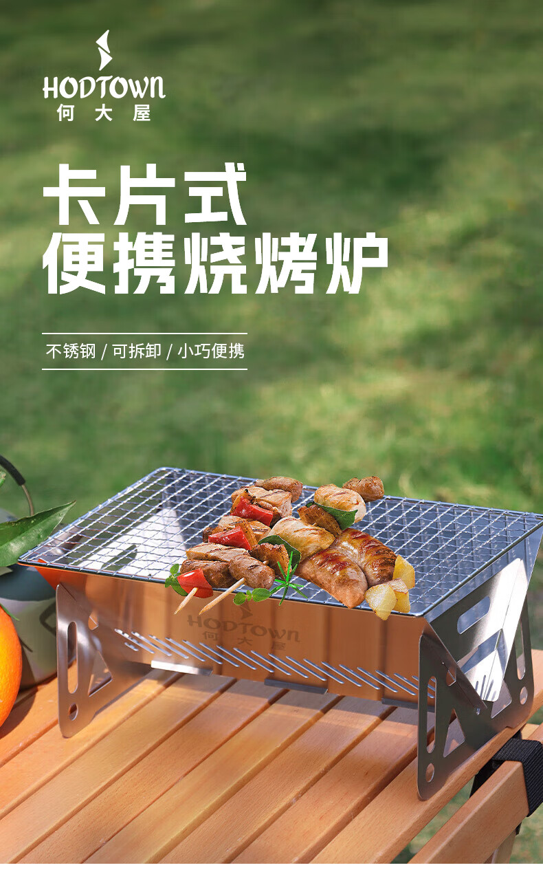 何大屋(Hodtown)烧烤架户外折叠不锈钢火炉可拆卸烧烤炉卡片式木炭露营 卡片式便携烧烤炉 HDW2008