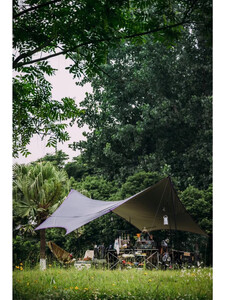Black Deer 云荫黑胶涂银天幕 黑鹿至今在我心中有浓厚的滤镜,作为国产品牌,黑鹿在原创的路上,算是不忘初心。坦率说,这款天幕很能打,黑胶遮阴效果不错,涂银合适冬季使用,蝴蝶造型线条感优雅,黑银为主,点缀紫色,和黑鹿的星期天充气帐一度是我当时的期待的组合产品。但是在当时700+的售价下,原厂配置的天幕杆实在是不忍直视,高低得叹息一声细狗,且地钉之细看齐风绳,这让我到现在都有点耿耿于怀,幽怨溢价下的错付,就当支持黑鹿了。