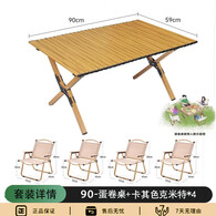 户外折叠桌子蛋卷桌摆摊便捷式野餐野炊烧烤露营桌椅全套装备用品 150CM木纹蛋卷桌+大号椅*4