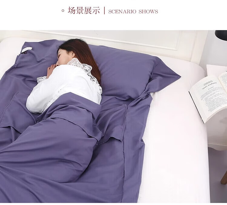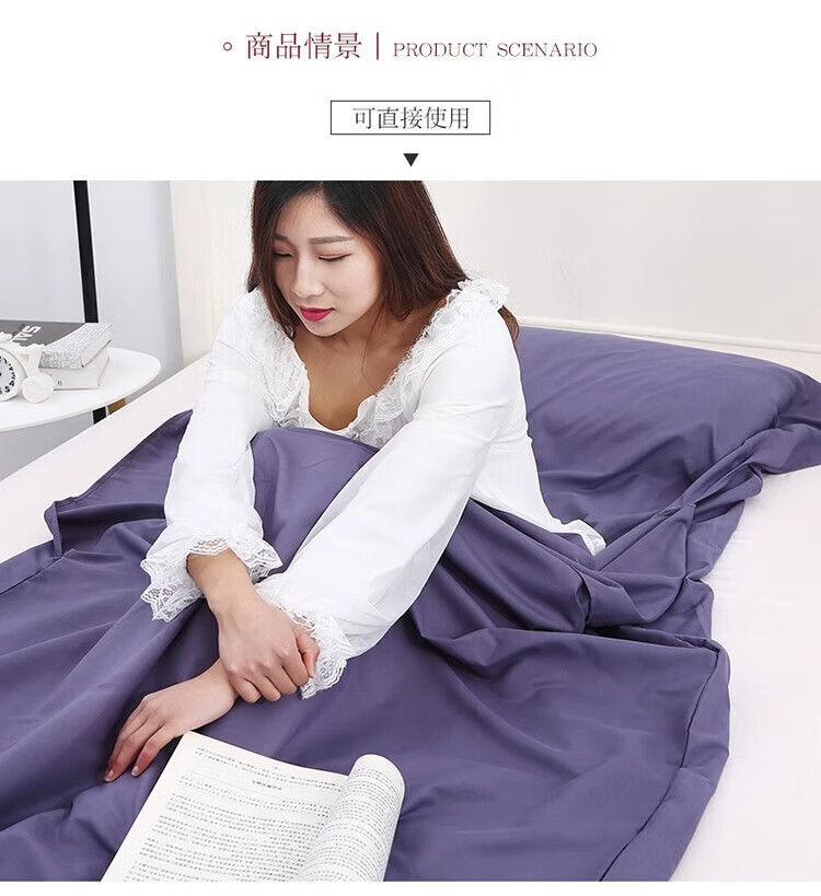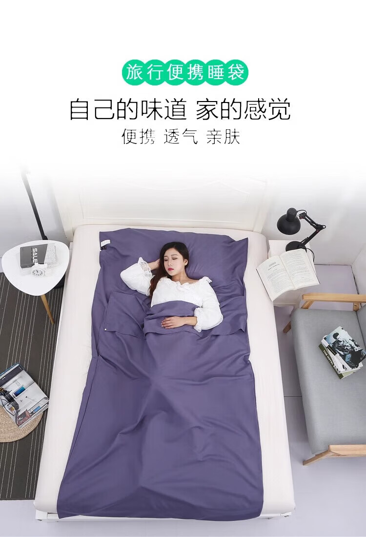 面料又薄又柔易收纳,整体触感接近冰丝面料,大小长度刚好适配自家的睡袋,单独用也合适,可以酒店用进行隔脏,防止酒店床褥污染自己身子,睡袋用可以极大减少水袋清洗次数。