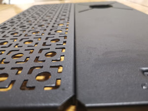 铁质的二单元igt便携小桌架,重量对一般男人来说,虽比铝合金的重,但拎起来一点不费事。整体质量很不错,但有一处质量小问题,客服也尽快给解决了。我现有的爱路客的igt炉子可以平整嵌入,但路客的一单元茶盘由于两家设计问题无法融合,请根据照片来理解