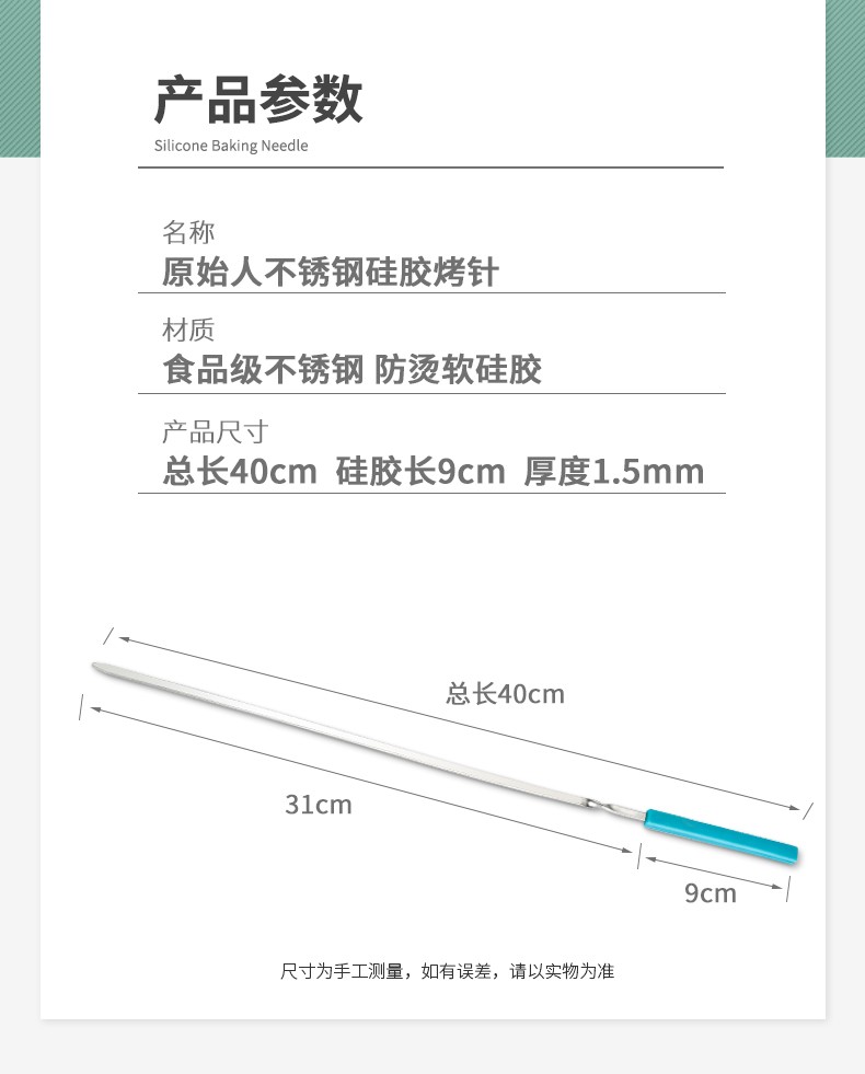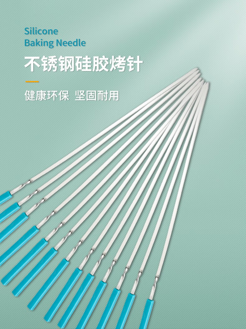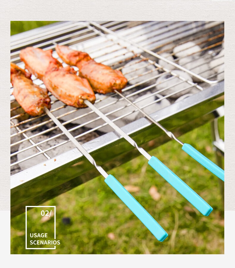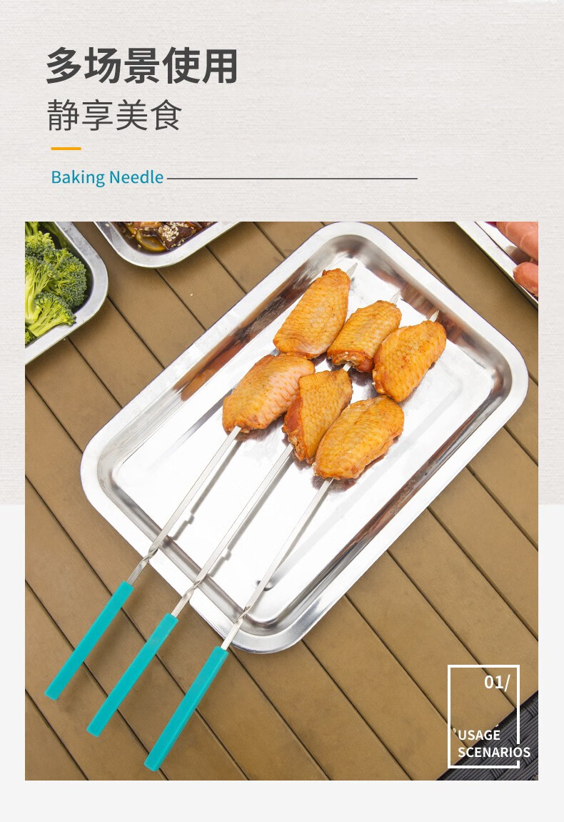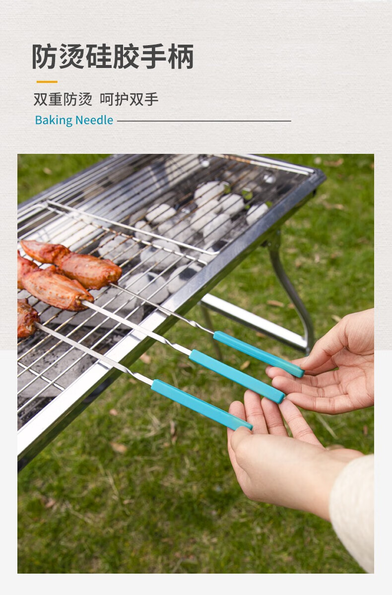 原始人 不锈钢烤针 硅胶手柄防烫手烤肉签子 烧烤工具烧烤配件 5只装