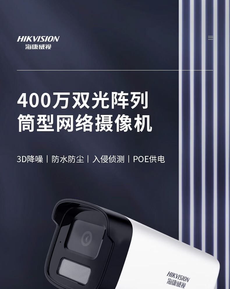 海康威视海康威视400万白光全彩POE网络摄像机室外防水监控DS-2CD1245-LA 皓视通品牌海康旗下IPC24V2-LA 6mm