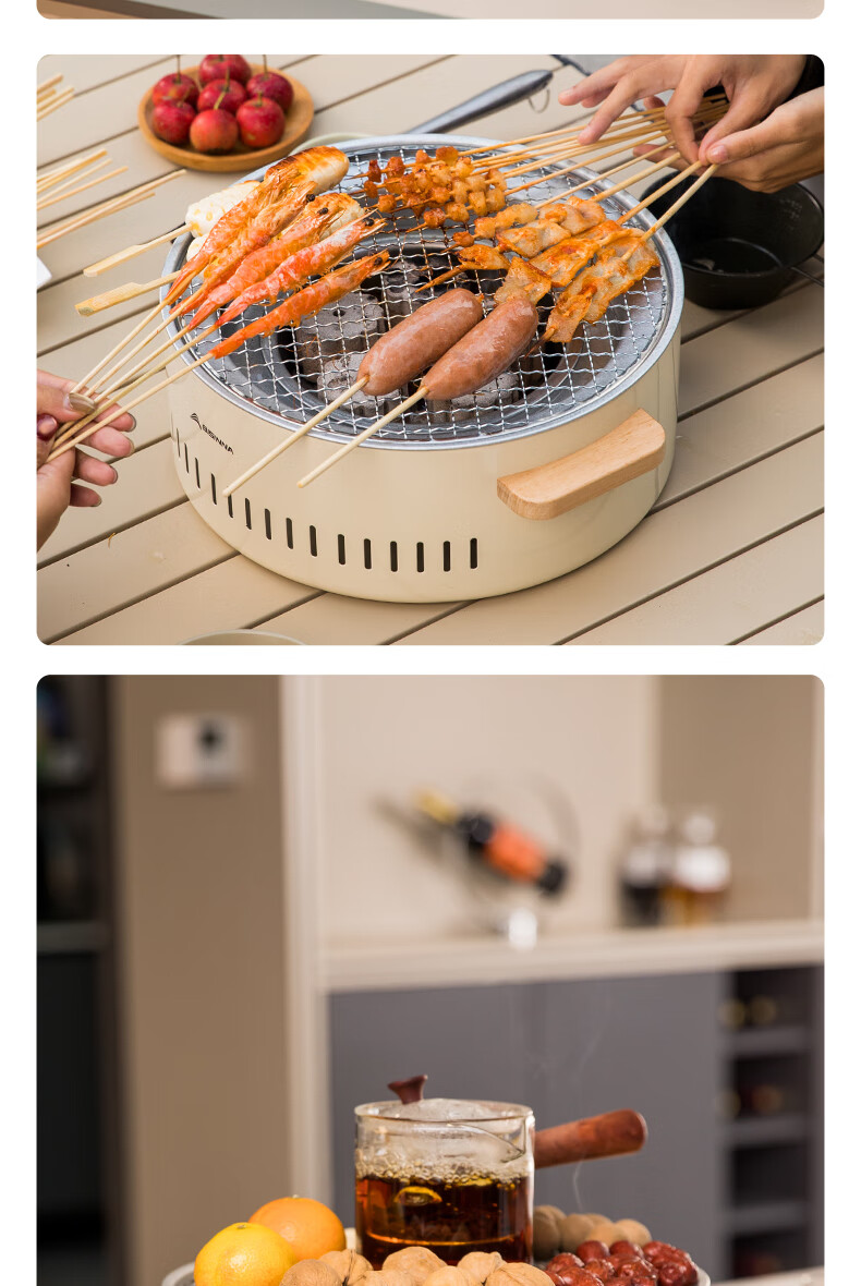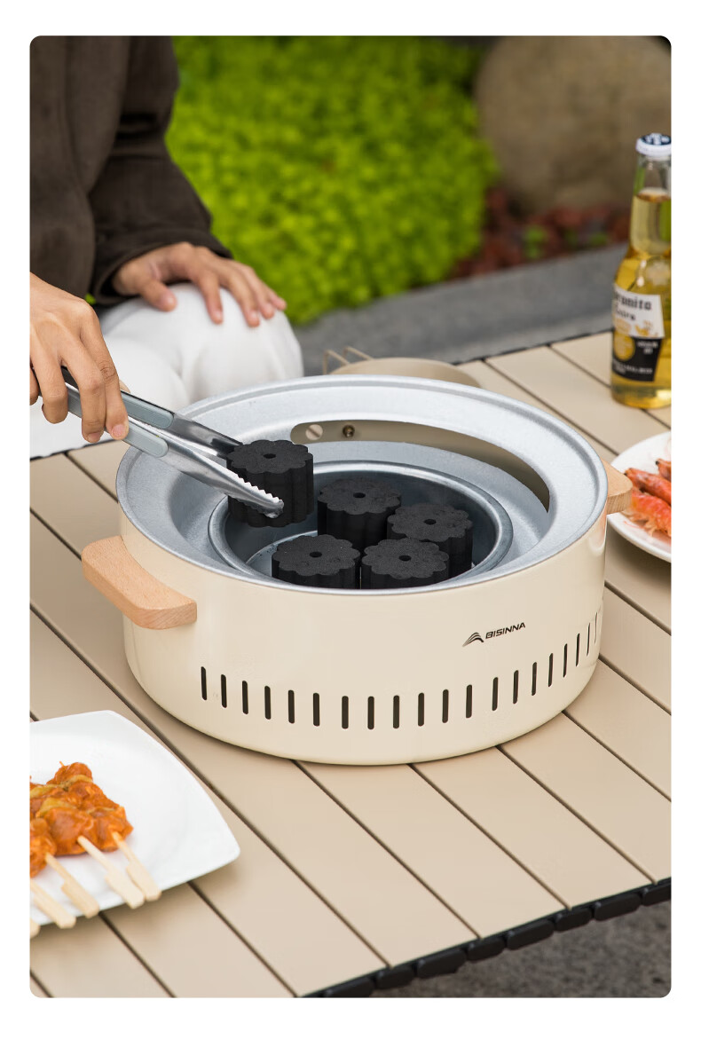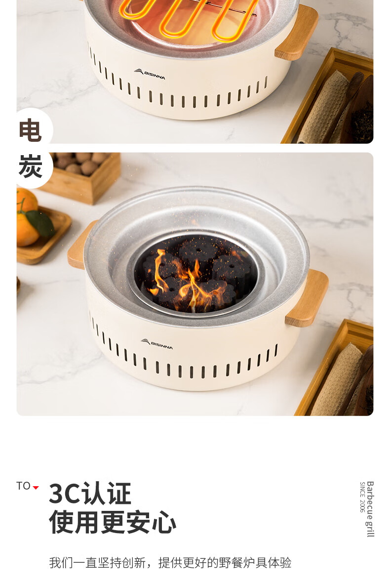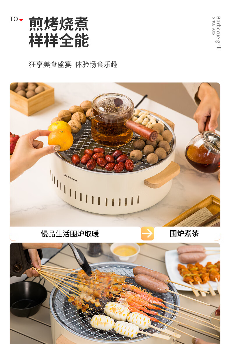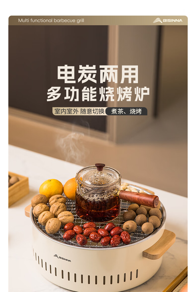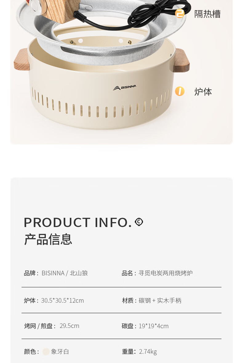 北山狼电碳两用烧烤炉围炉煮茶 电炭两用-象牙白S2【烤网+煎盘】