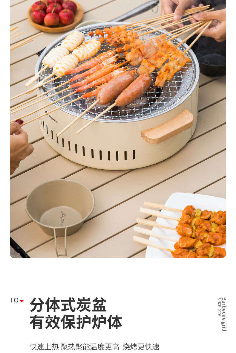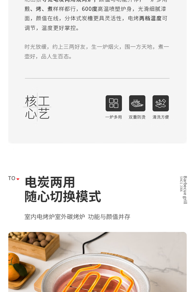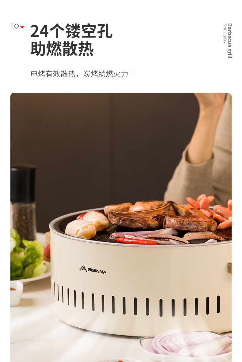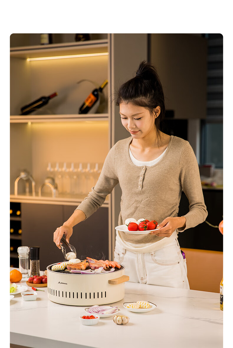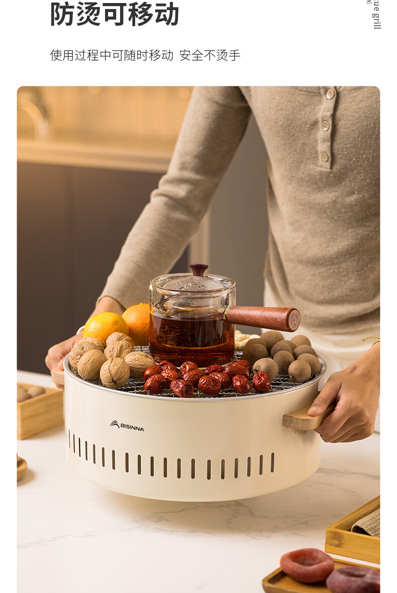 北山狼电碳两用烧烤炉围炉煮茶 电炭两用-象牙白S2【烤网+煎盘】