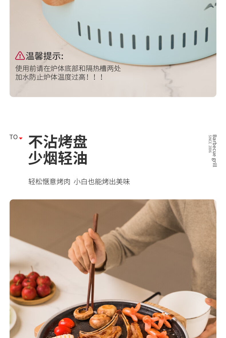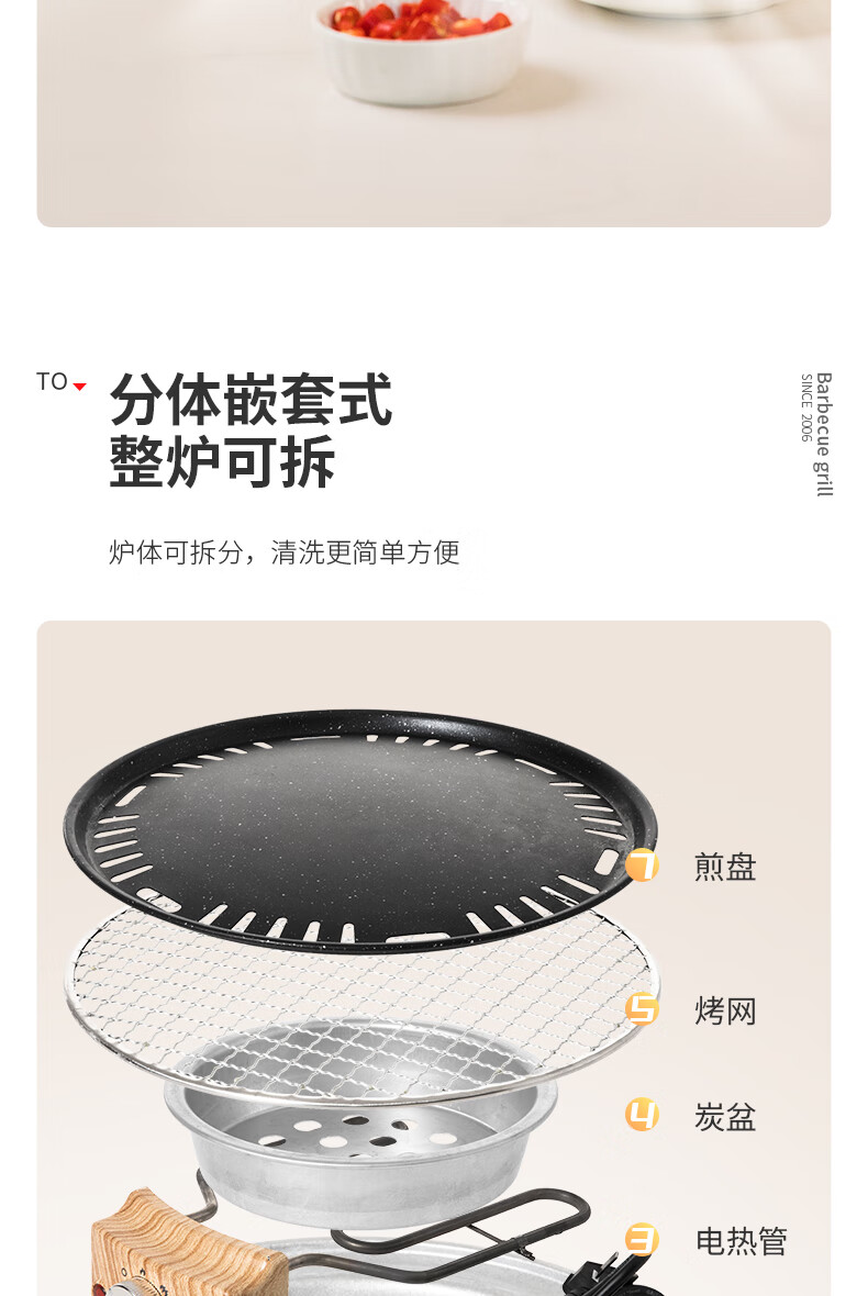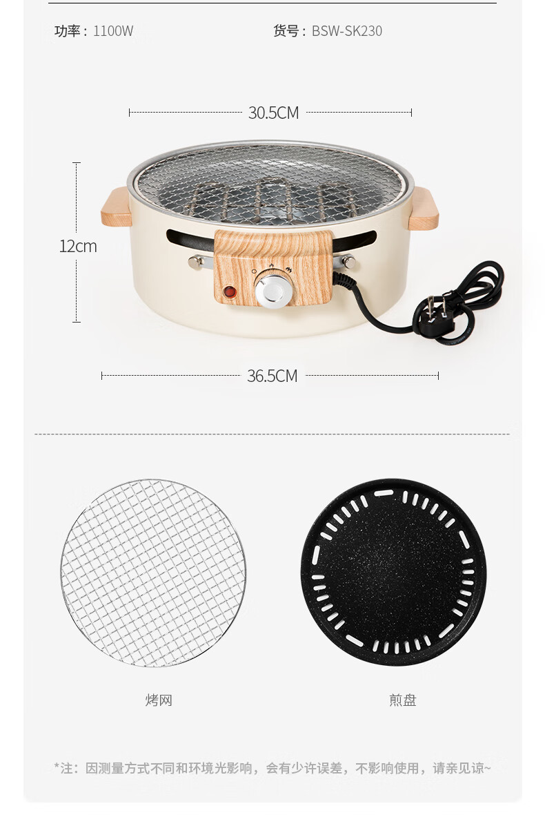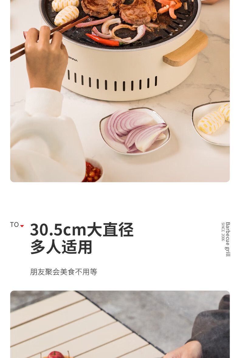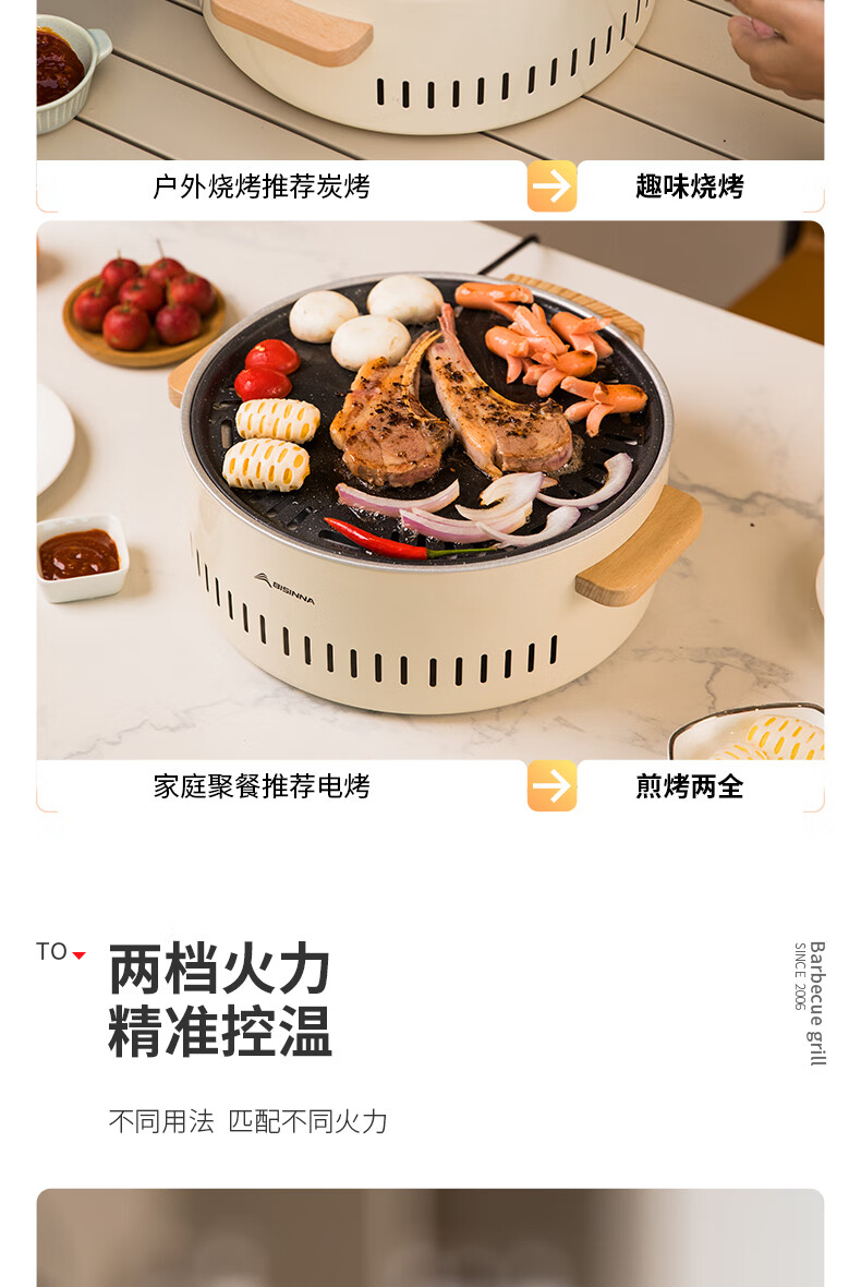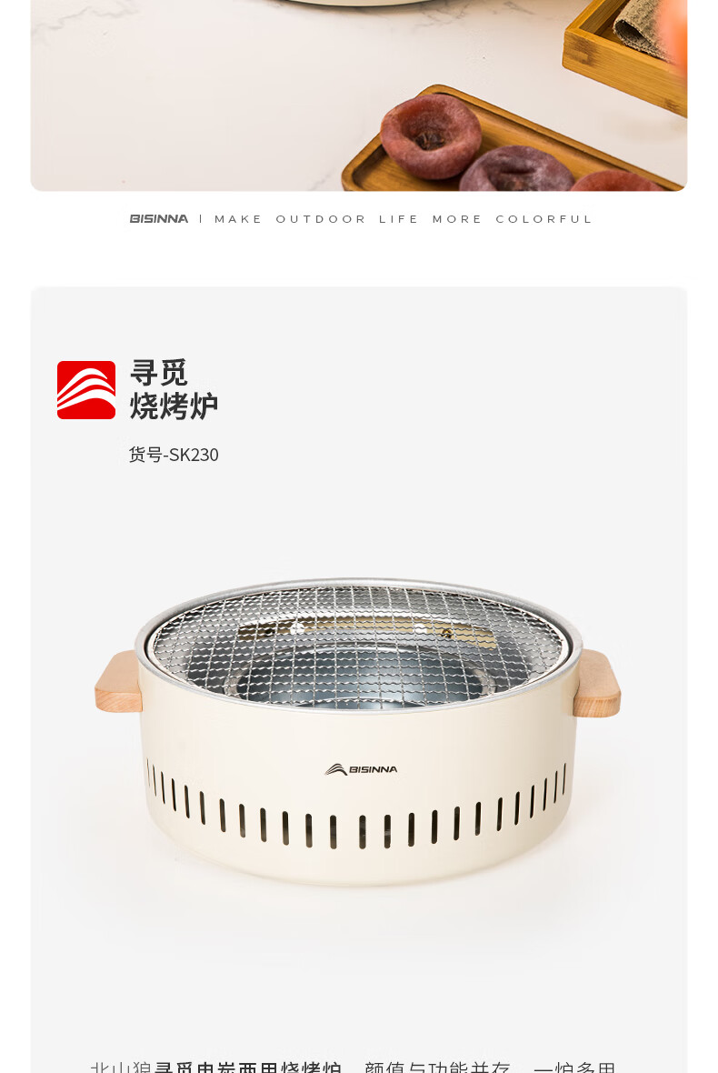 北山狼电碳两用烧烤炉围炉煮茶 电炭两用-象牙白S2【烤网+煎盘】