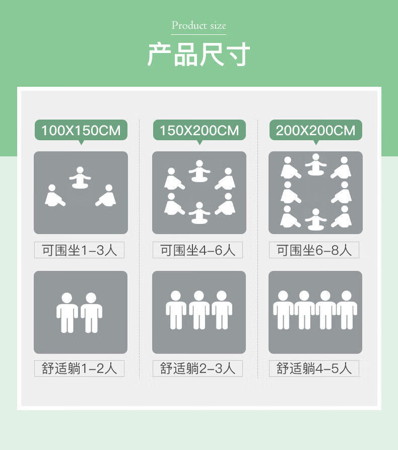 EVANOVM野餐垫防水加厚便携式户外旅游露营野餐地垫草坪春游防潮 [飞叶]包边+防水+手提折叠+无 [2米*2米]可围坐5-8人