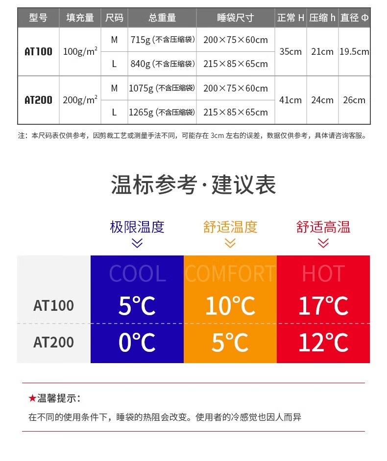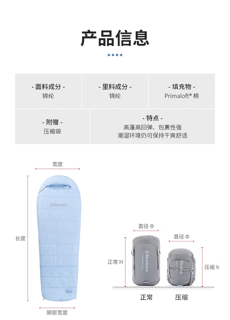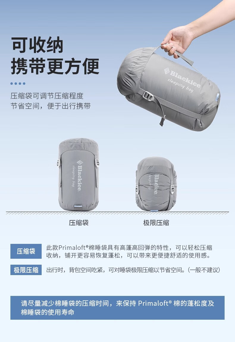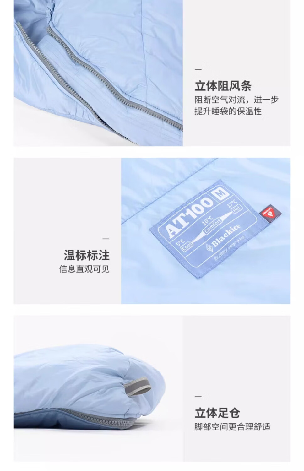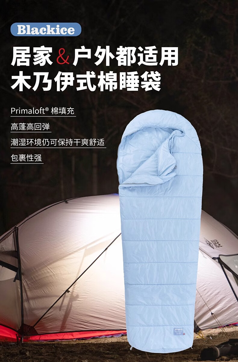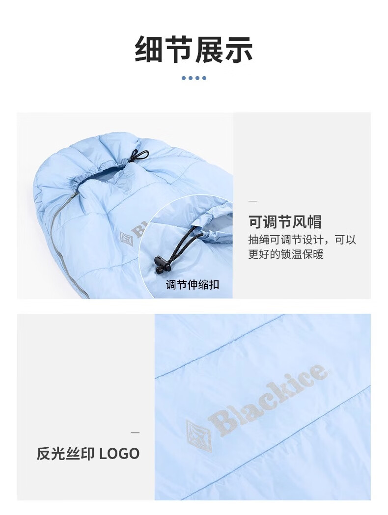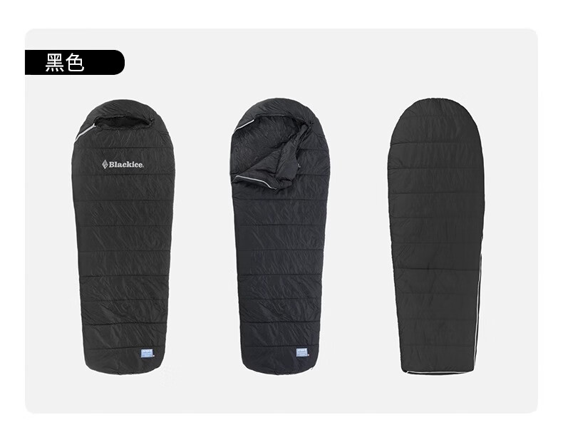 黑冰P棉睡袋成人户外露营加厚防寒被子两用单人便携木乃伊式AT AT100黑色 L 舒适温标10度