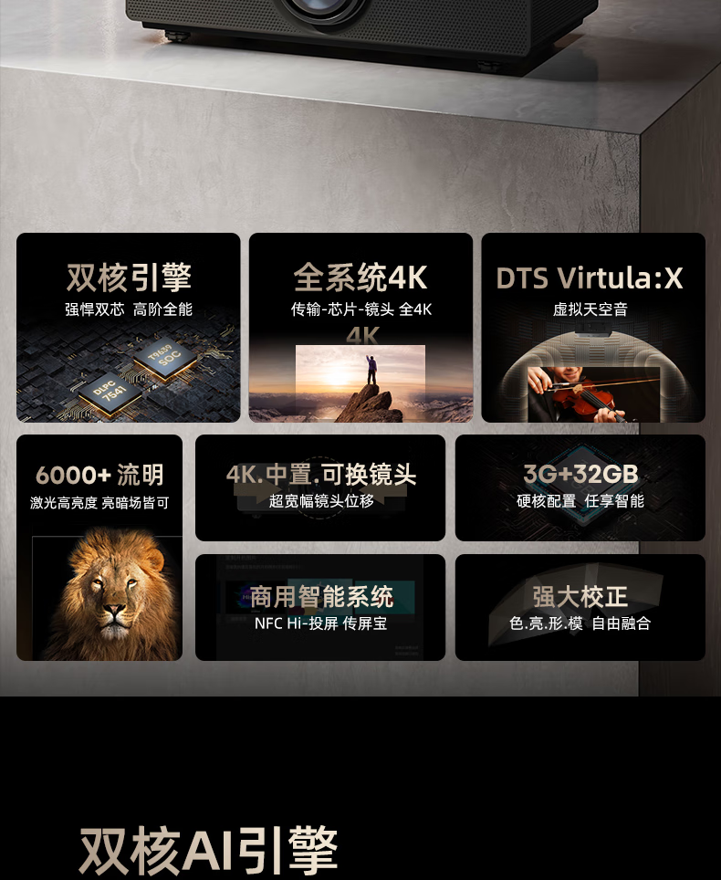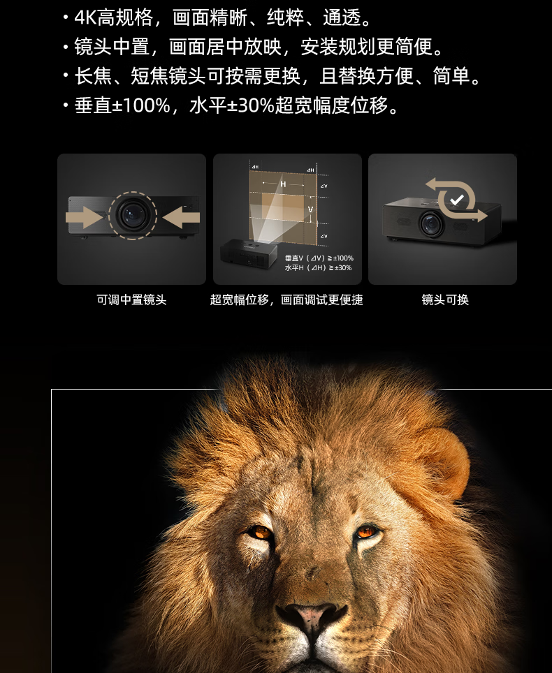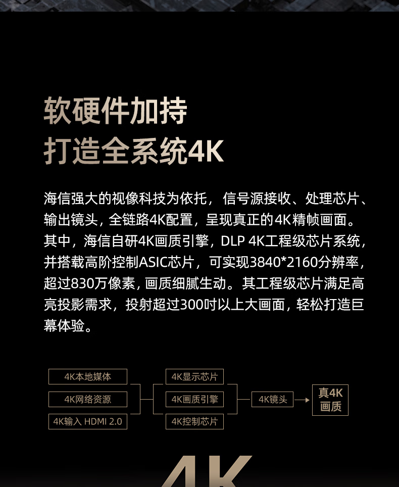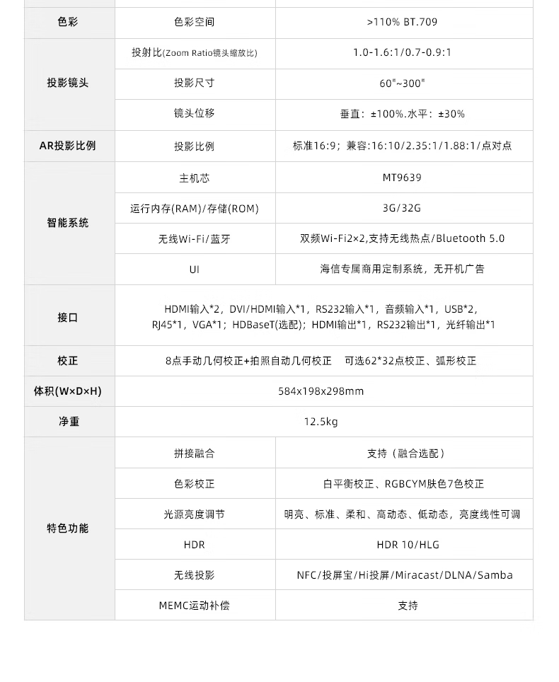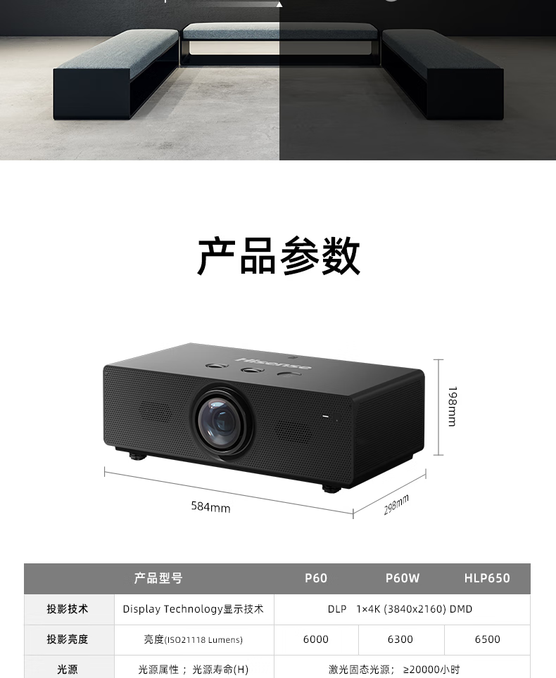 海信(Hisense)P60/P62/BK6/HLP650/P70/P75/P80/PA85/P100/P120/T50/T68投影仪 T68(6000流明3840*2160)