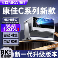 康佳投影仪家用家庭影院4k超高清投影机白天办公卧室便携加幕布一体投影电视一体机 C12银 全自动对焦+白天也清晰+AI语音