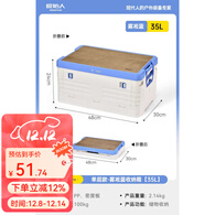 原始人户外收纳箱露营折叠箱储物箱子车载整理野营用品便携式折叠桌 35L雾凇蓝【可侧开 送木质桌板】