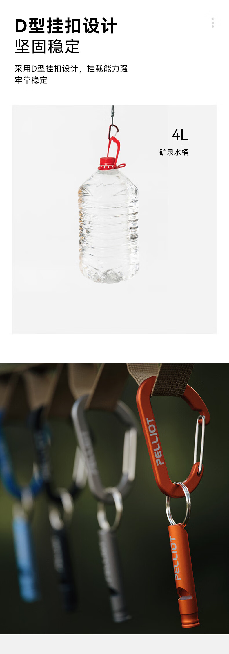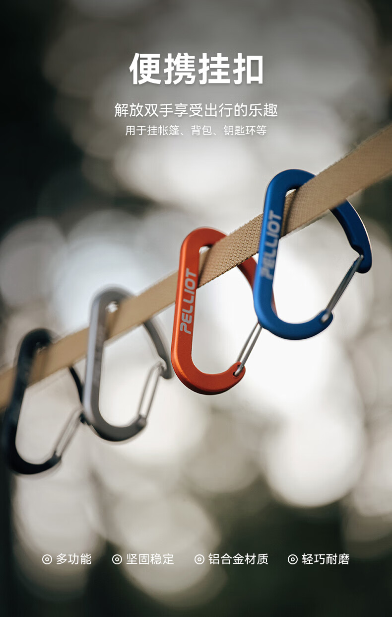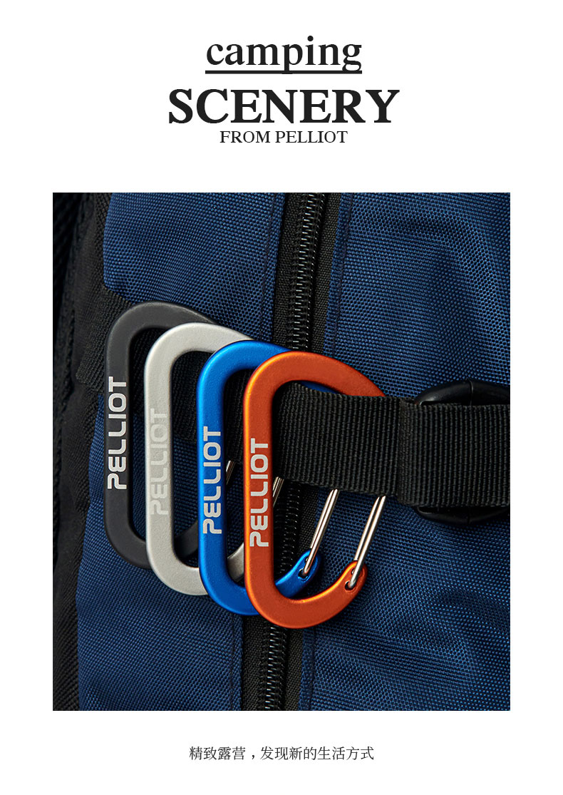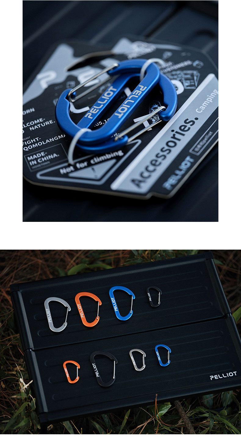 伯希和户外登山野营挂钩扣环露营徒步多用途钥匙扣餐具水杯D型挂扣 灰色 中号【2只/包】