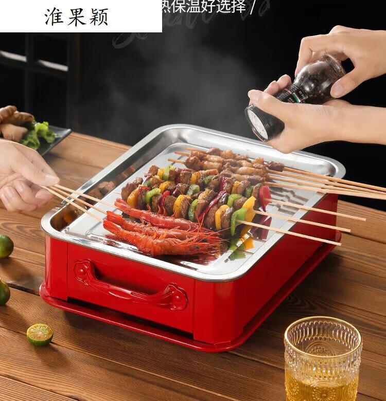 钻后烧烤保温炉商用加热炉蜡烛保温盘烧烤店热串炉烧烤 红色保温炉31*21cm