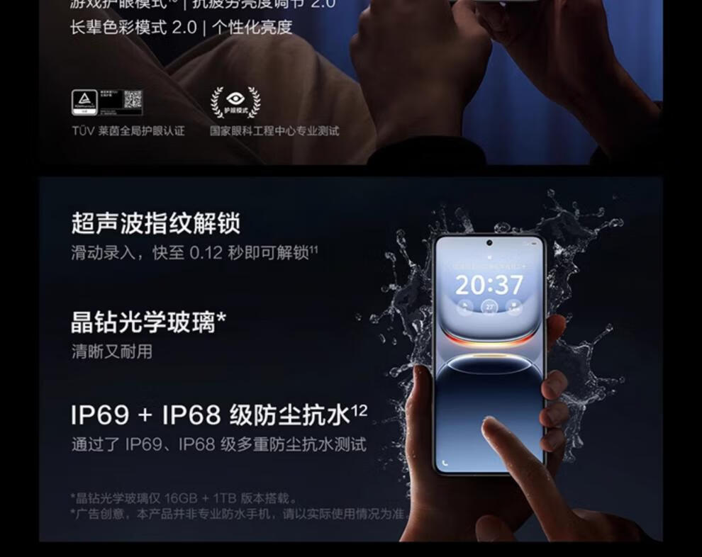 德国莱茵护眼;SGS认证;LTPO屏幕;高频PWM调光