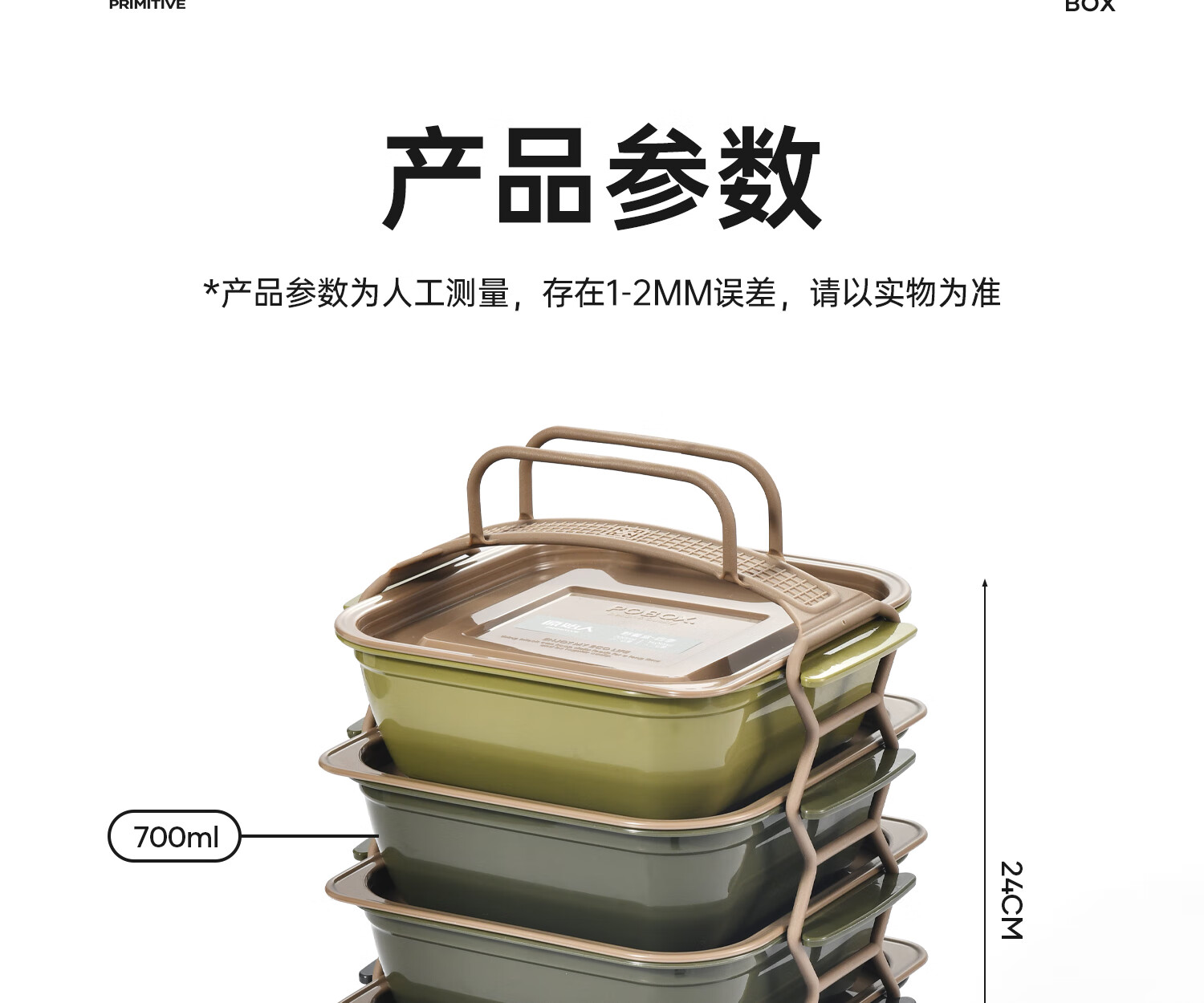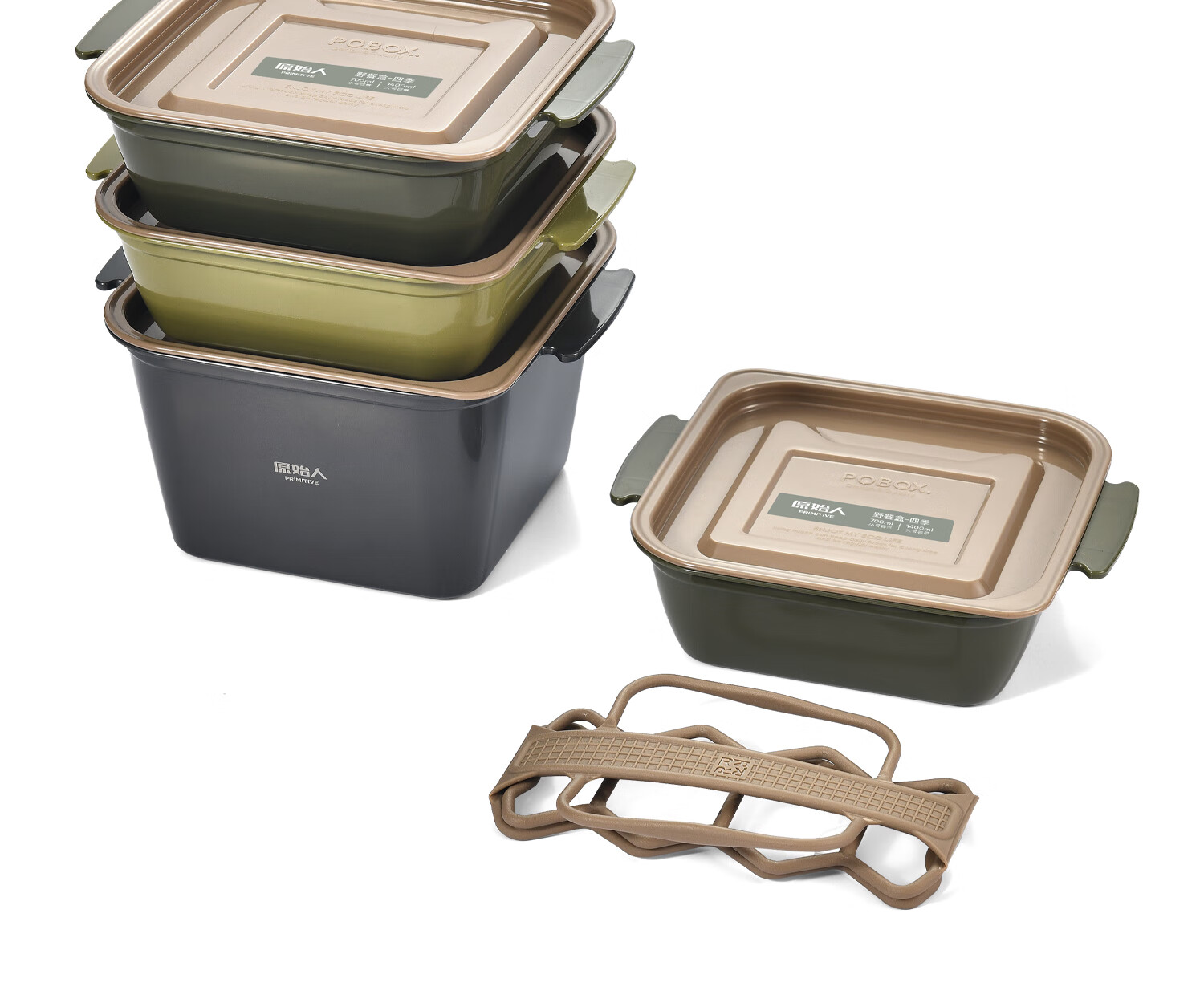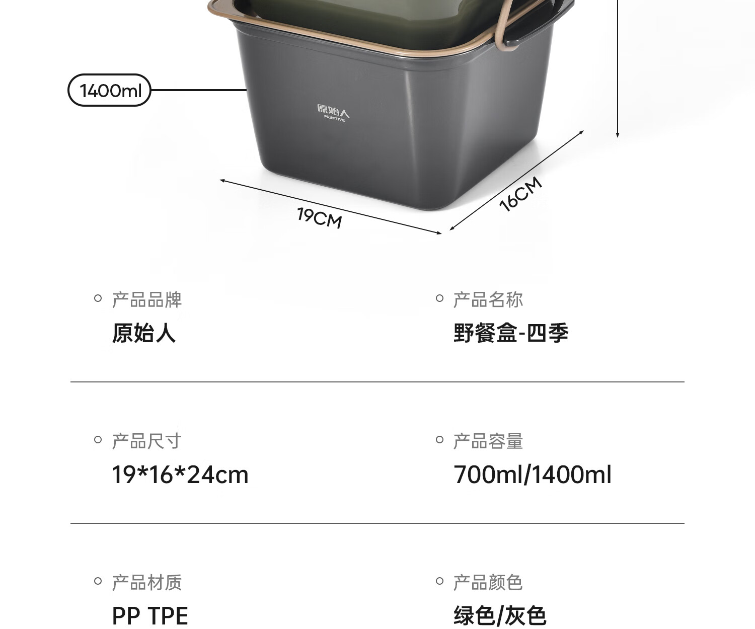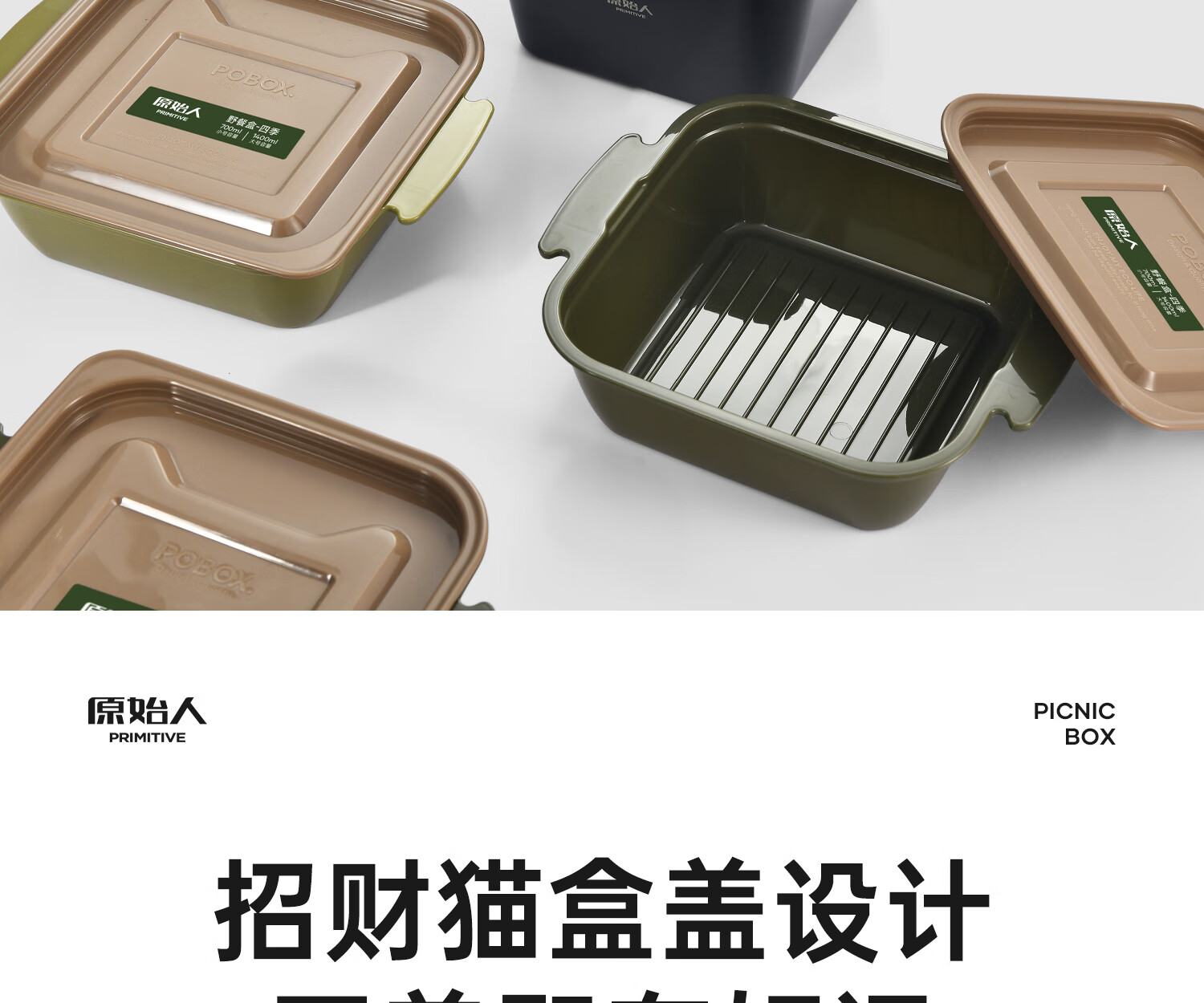 原始人(The Primitive)轻量化户外露营餐具套装春游野餐移动收纳便携式外出手提式便当盒 野餐盒-四件套【可重复使用】
