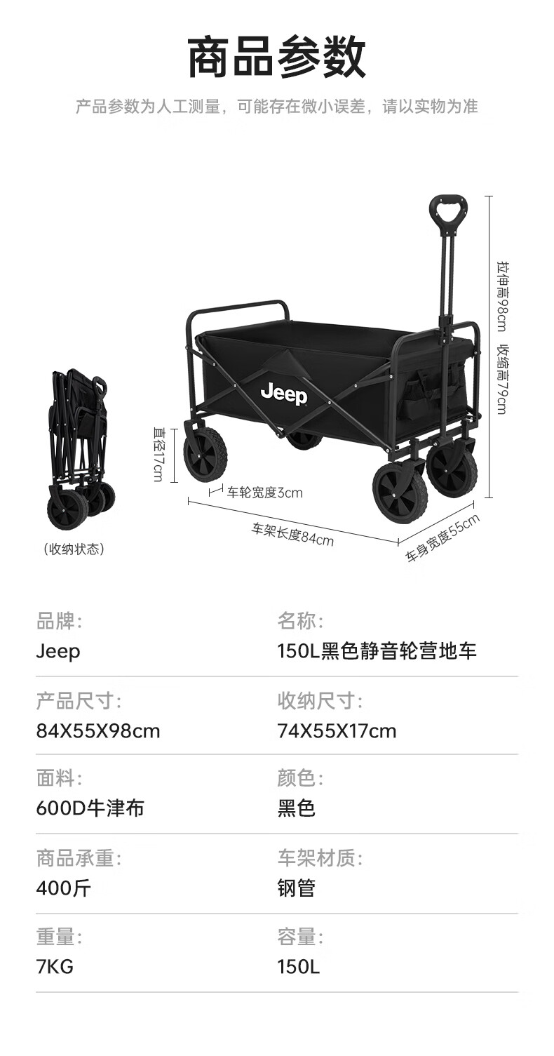 我推车实在是太实用了,实在信任吉普这个品牌,这个价格性价比简直是太高了,轮子又宽又大,实在是拉着很舒服上山下坡都很好走台阶也可以直接拉能装很多很多的东西感觉装两个成年人应该没有啥问题但是还没有尝试很信任京东这个品牌。