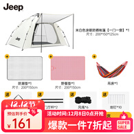 JEEP天幕帐篷户外露营帐篷全自动速开便捷天幕二合一防晒家庭野营装备 米白色帐篷+防潮垫+野餐垫+吊床