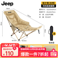 JEEP户外折叠椅露营沙滩躺椅折叠午休床四档折叠家用便携可折叠高背凳 细沙黄【舒适加棉,四挡可调,坐躺两用】